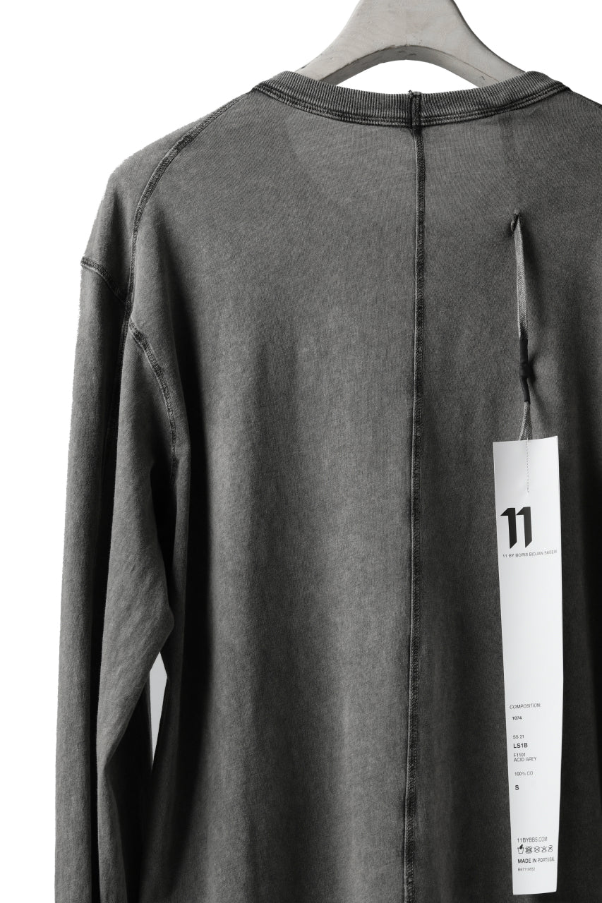 11 BY BORIS BIDJAN SABERI LONG SLEEVE TEE "L-S1B-F-1101" (ACID GREY)