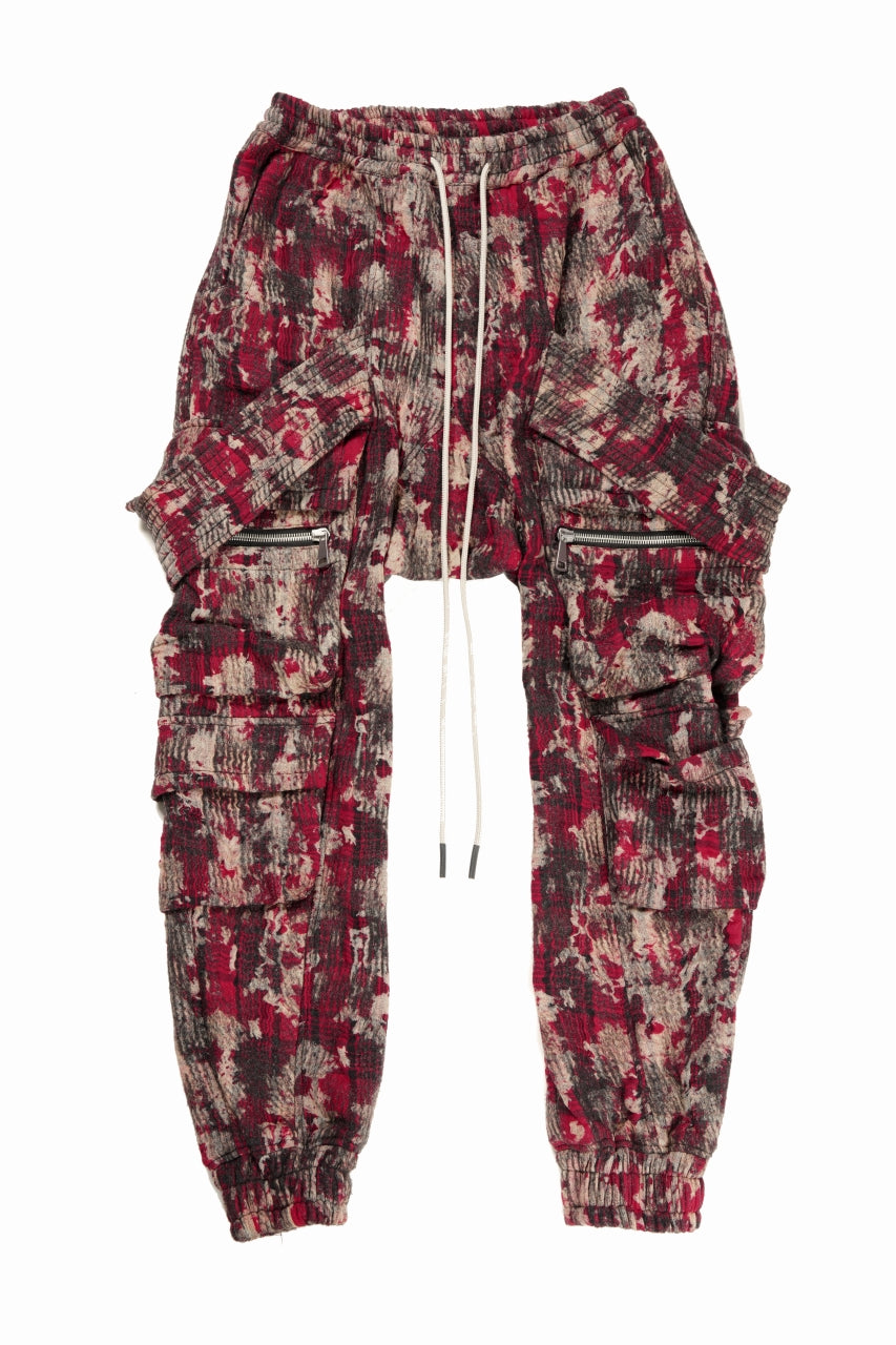 A.F ARTEFACT BELTED DETAIL JOGGER / JACQUARD ABSTRACT PATTERN (RED)
