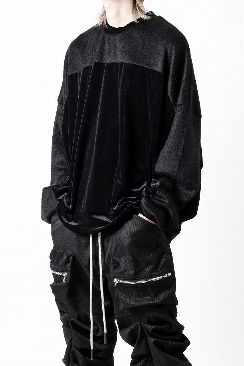 A.F ARTEFACT BRUSHED KNIT COMBI VELOR TOP (BLACK)