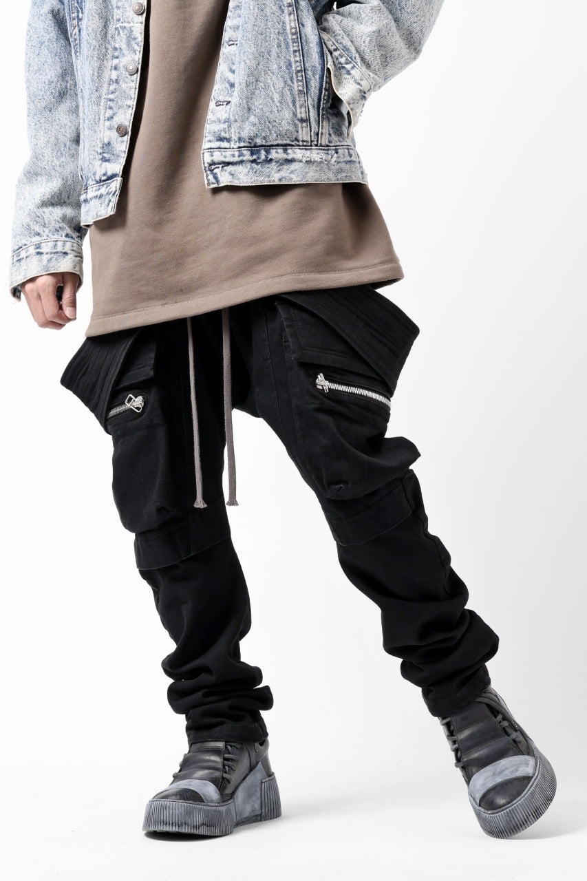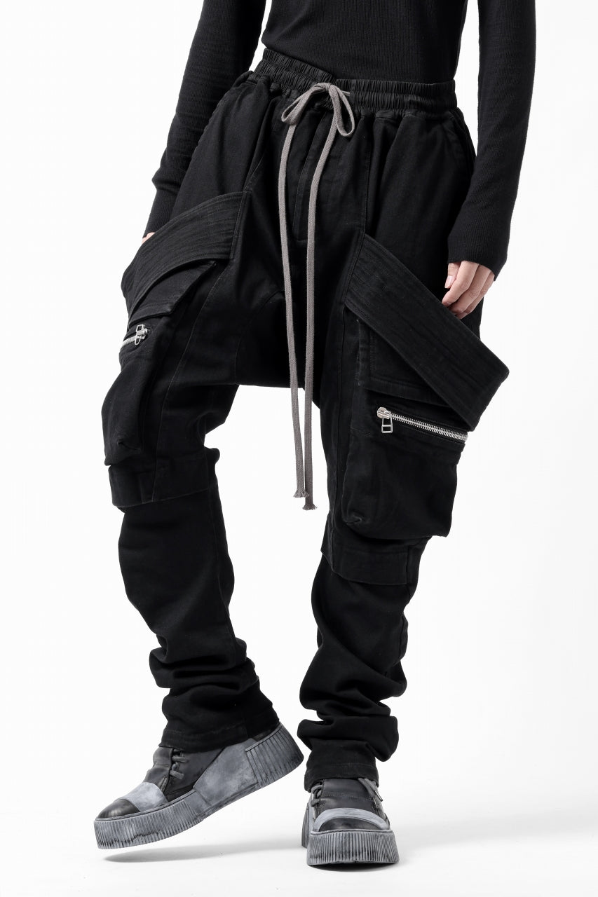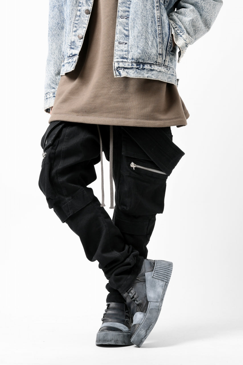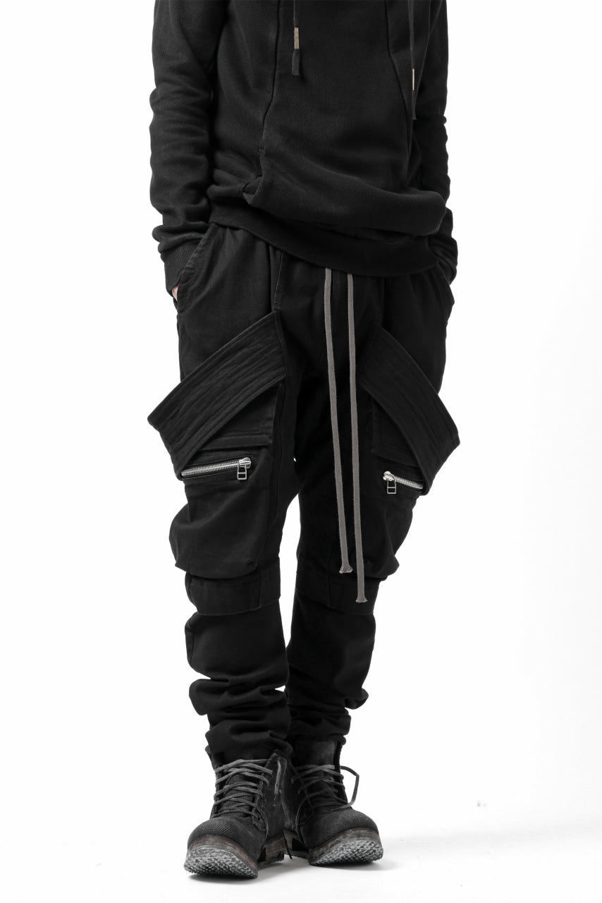 A.F ARTEFACT FLAP-DETAIL SLIM CARGO PANTS / HI-STRETCH DENIM (BLACK)