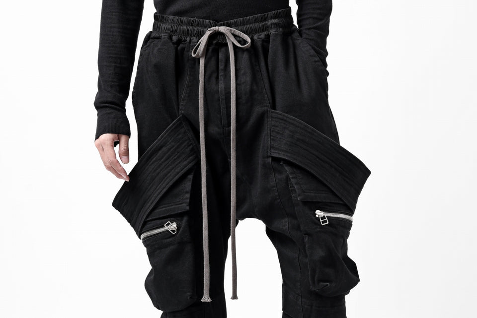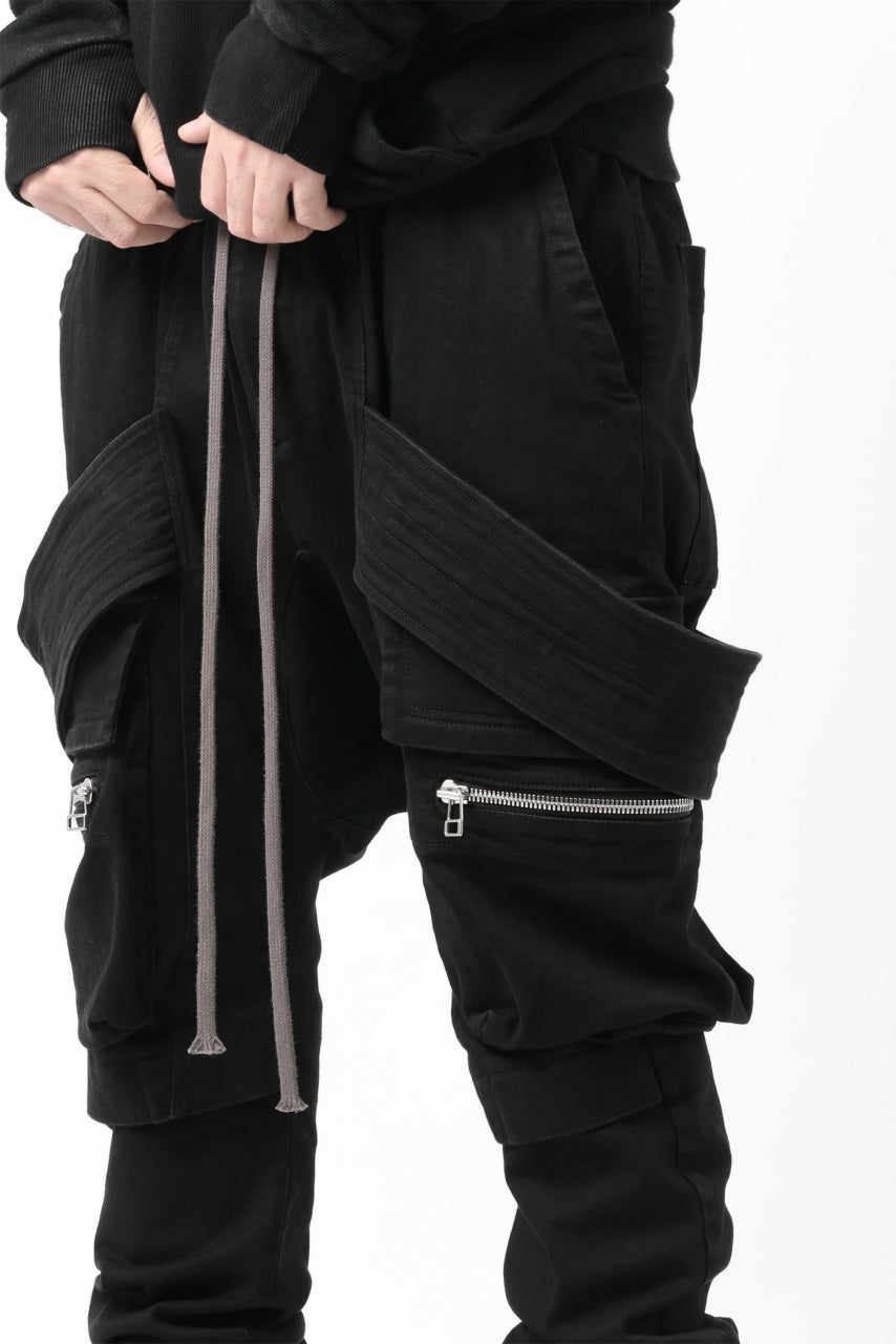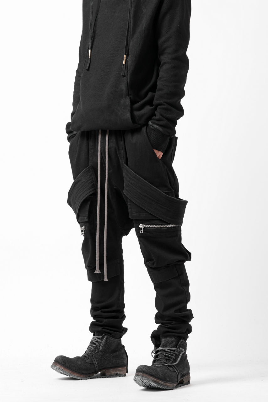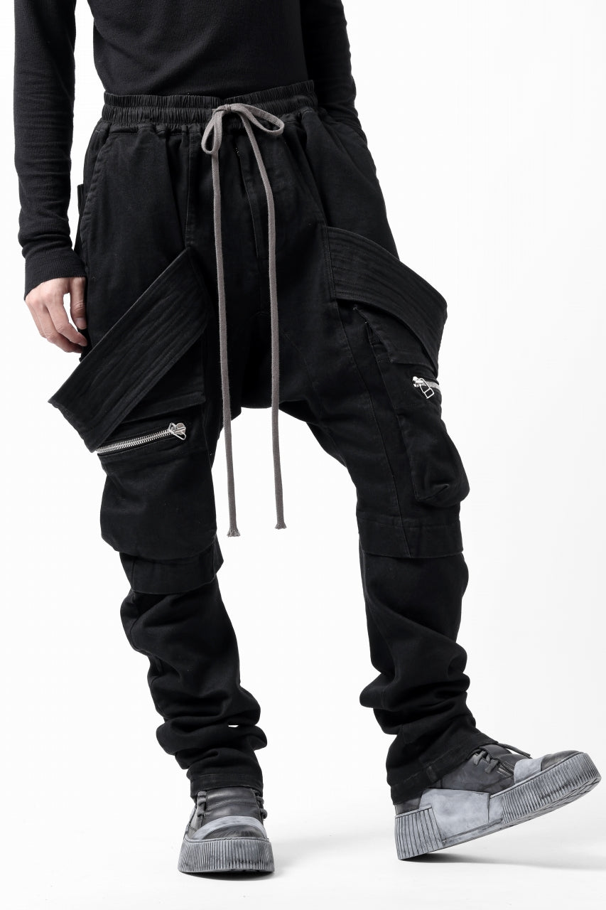 A.F ARTEFACT FLAP-DETAIL SLIM CARGO PANTS / HI-STRETCH DENIM (BLACK)