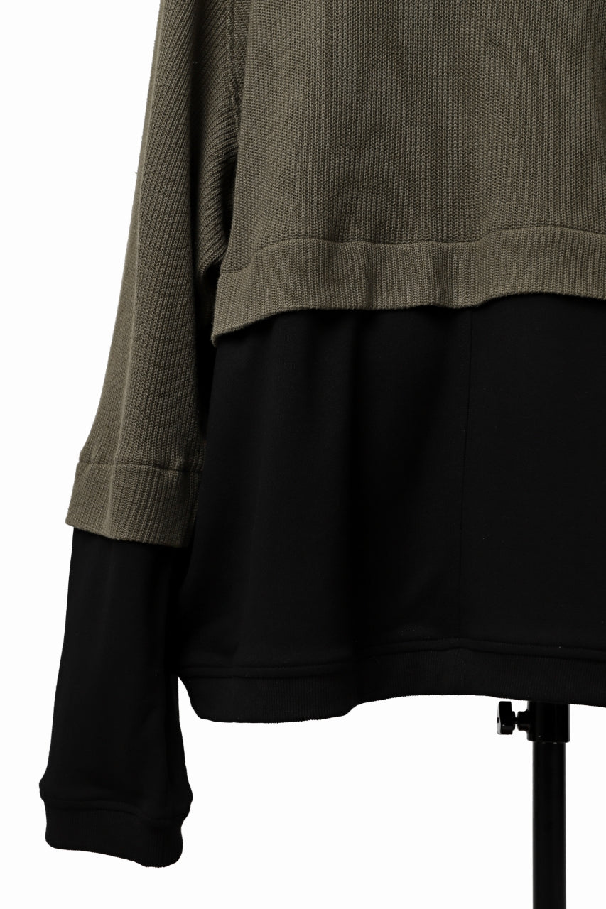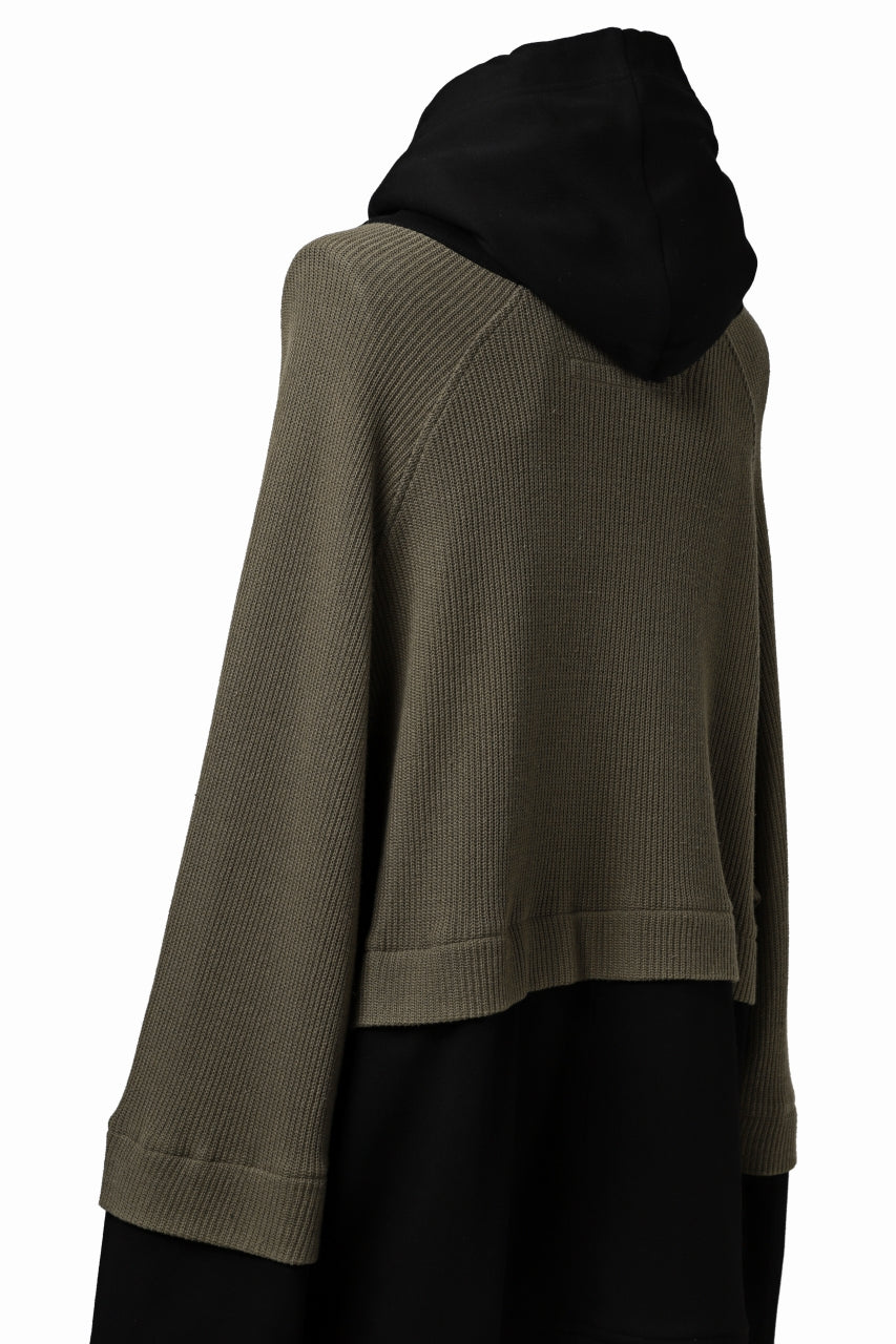 A.F ARTEFACT KNIT-COMBINATION ZIPPER HOODIE (BLACK x KHAKI)