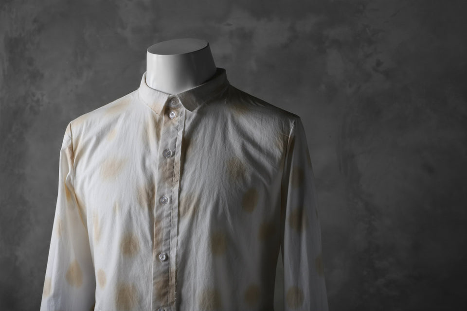 紅茶染めを水玉模様に施した、シンプル且つポップなスリムフィットのブロードシャツ。
