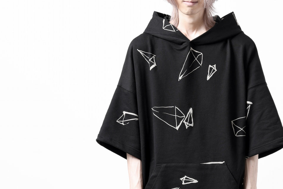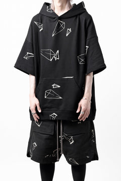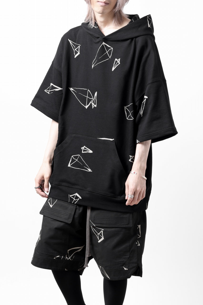 A.F ARTEFACT PYRA PATTERN PRINT SWEAT HOODIE SHORT SLEEVE (BLACK)