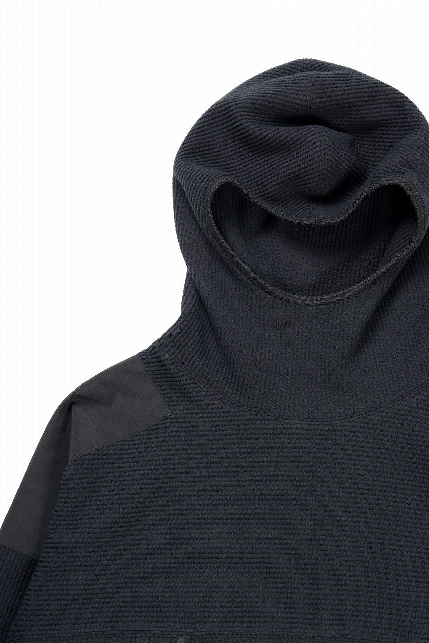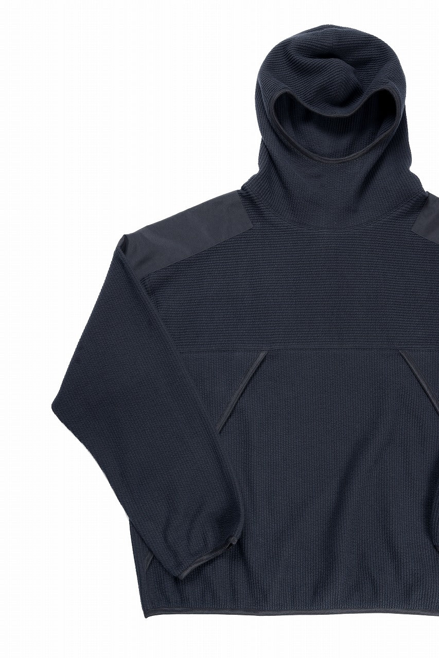 ・頭と顏をスッポリ覆い隠すフードと、シャープなフロントポケット。