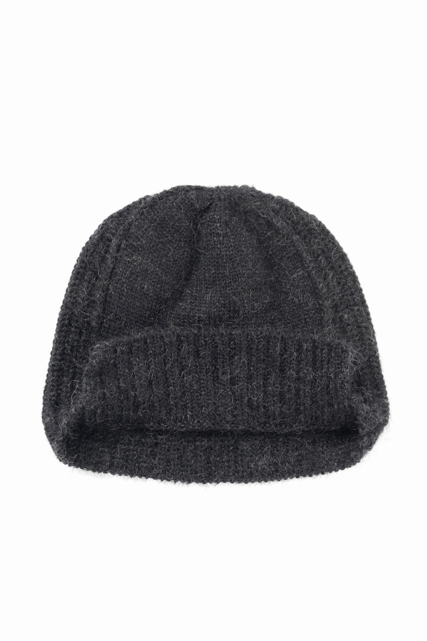 Y's MAHAIR WOOL COMBINATION KNIT BEANIE (BLACK)