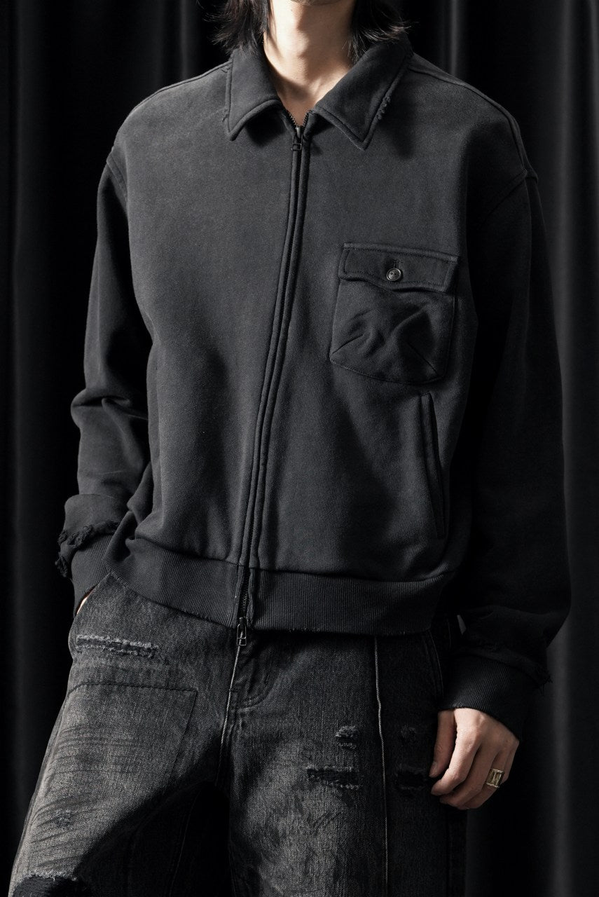 ・名称通り、ユーズド加工と胸ポケットが特徴的なスウェットブルゾン。