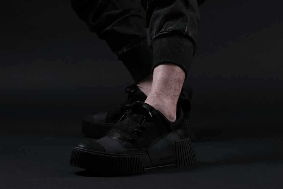 BORIS BIDJAN SABERI HORSE LEATHER LOW CUT SNEAKER / WASHED & HAND TREATED "BAMBA2.1-SIN" (BLACK)