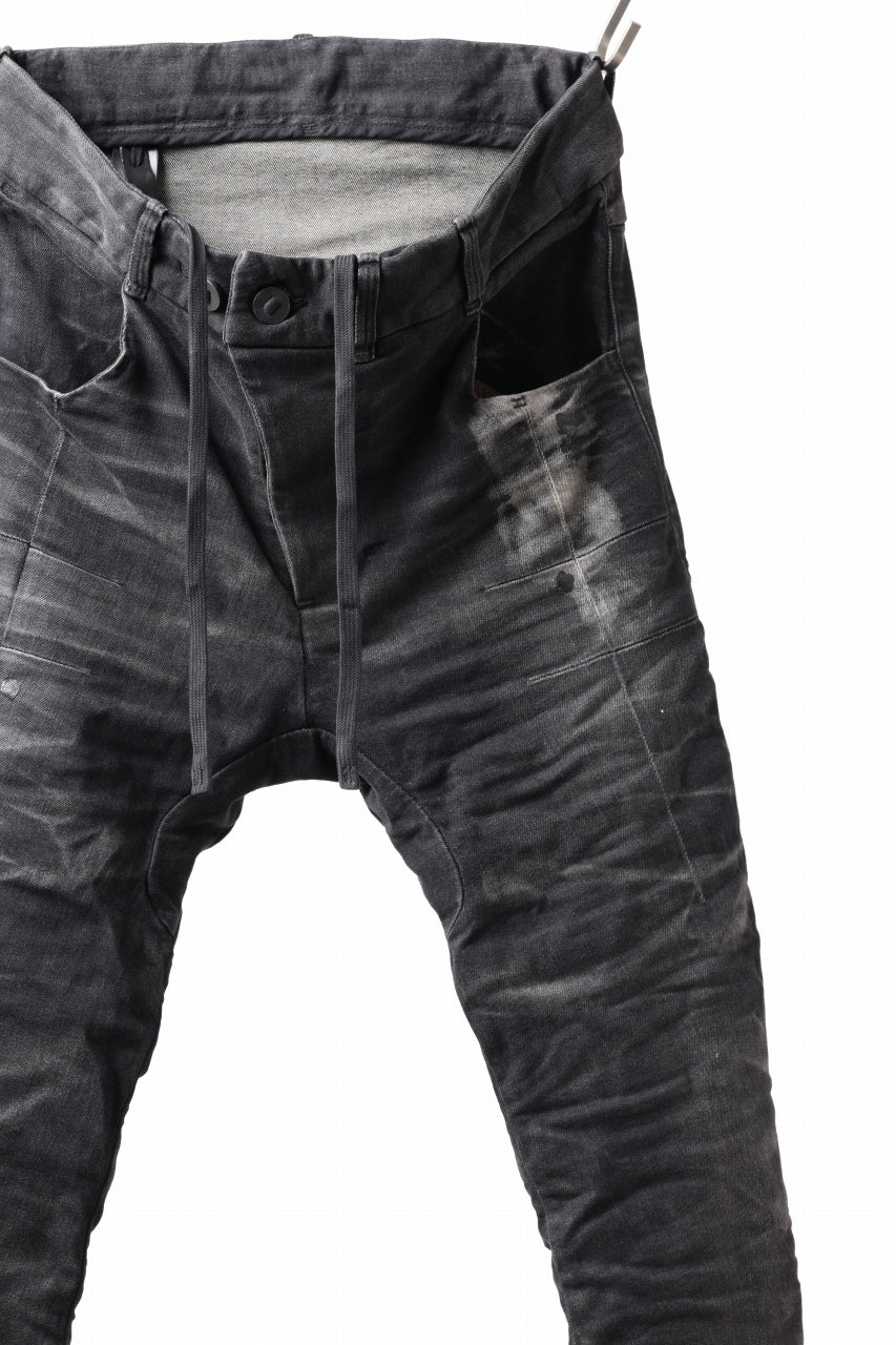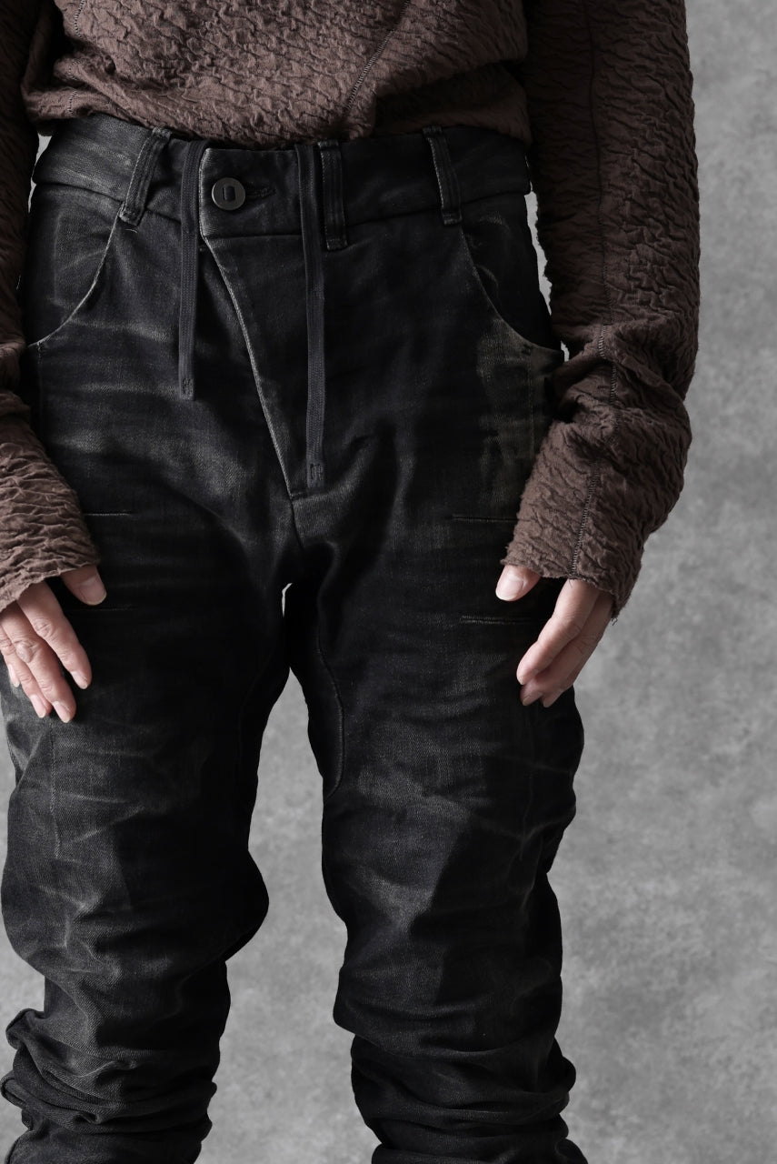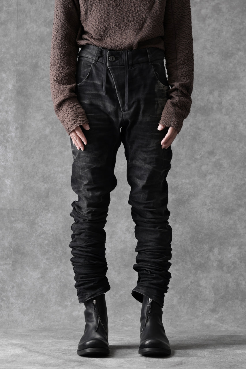BORIS BIDJAN SABERI TIGHT FIT PANTS / STONE WASHED & USED EFFECT & BODY MOLDED "P13.TF-F1603K" (BLACK DENIM)