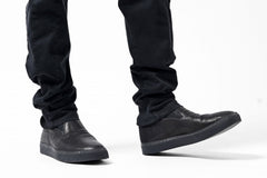 ・製品縫製後にブラックダイ、微かなアタリや擦れも表現