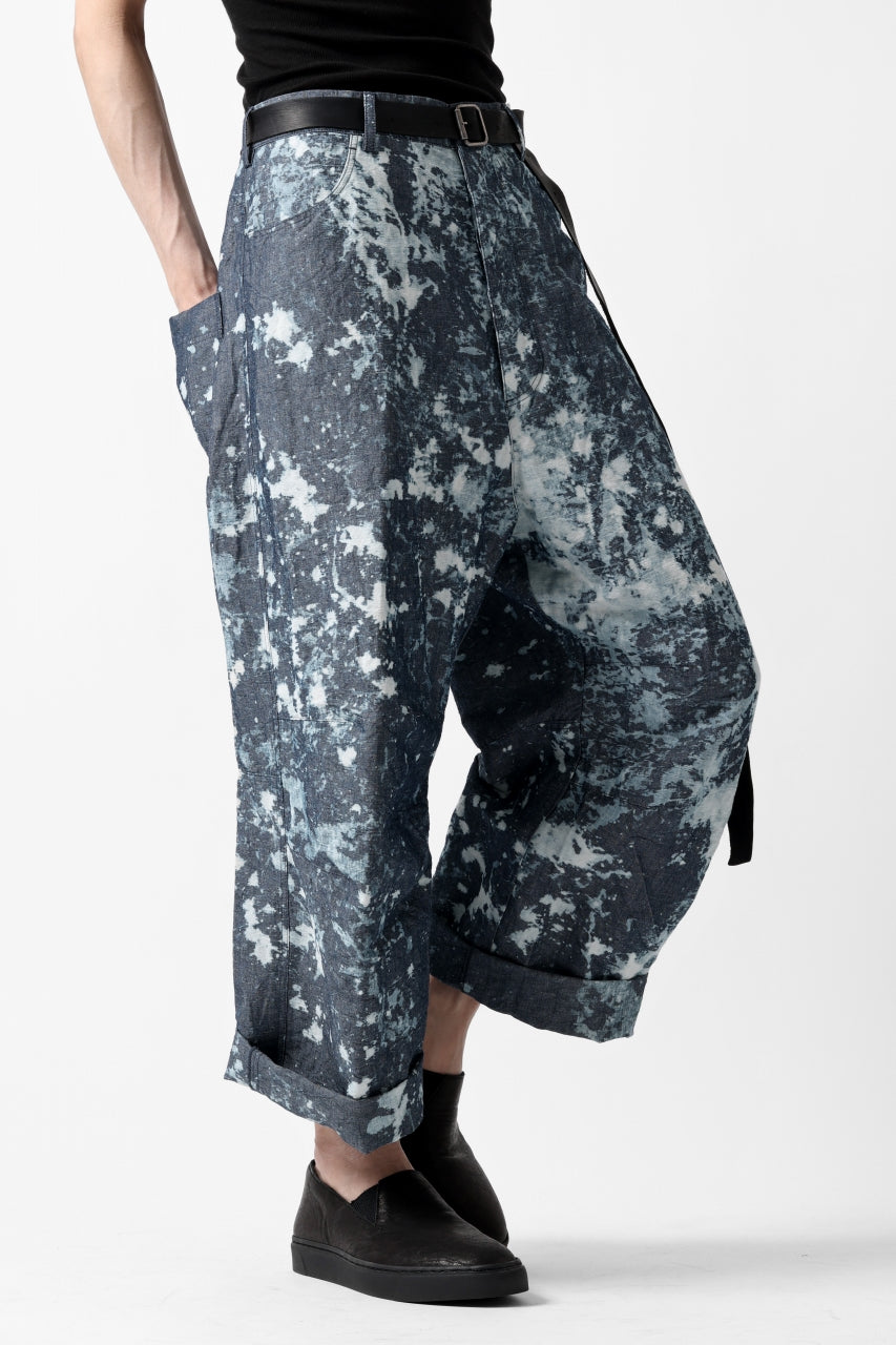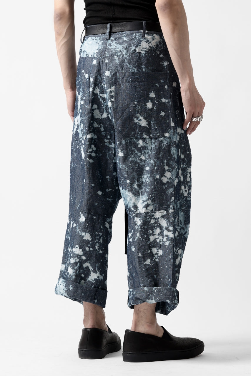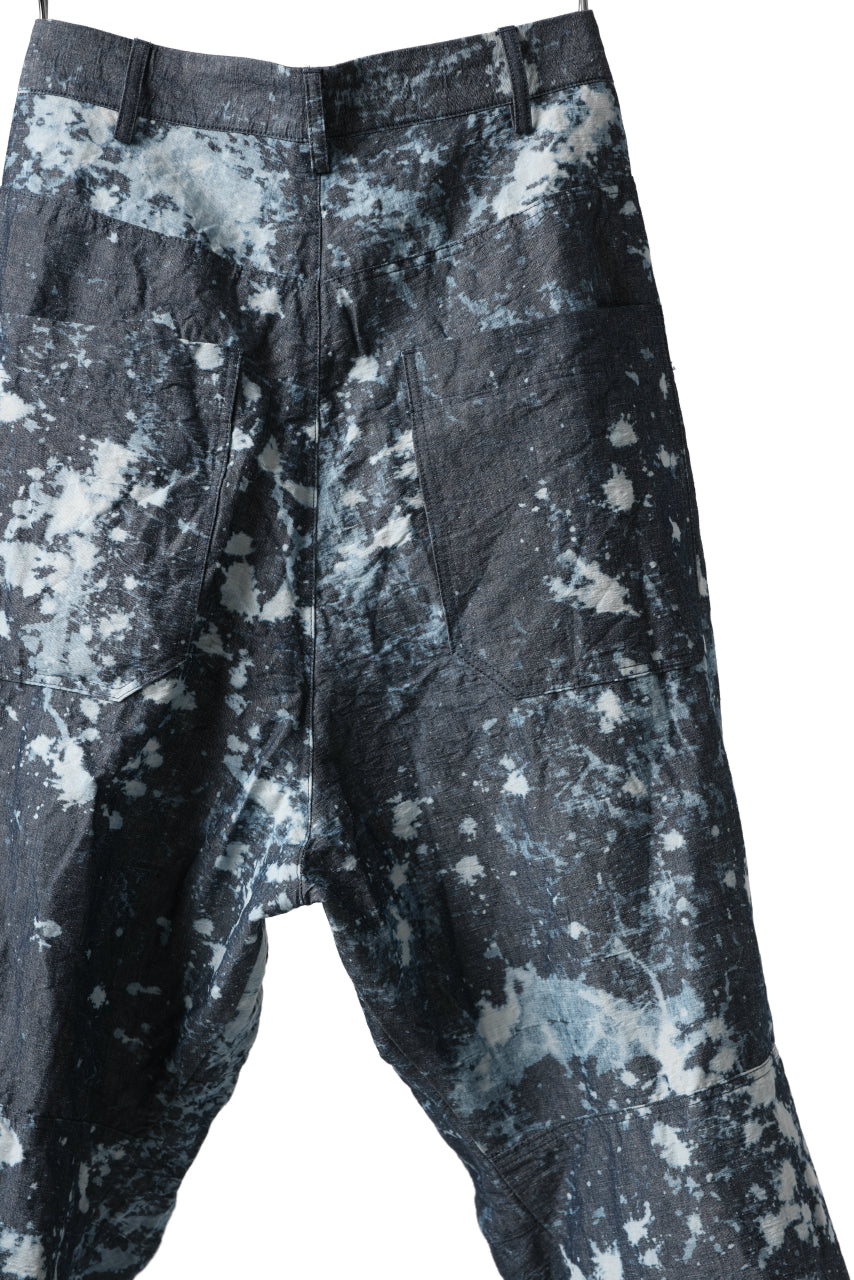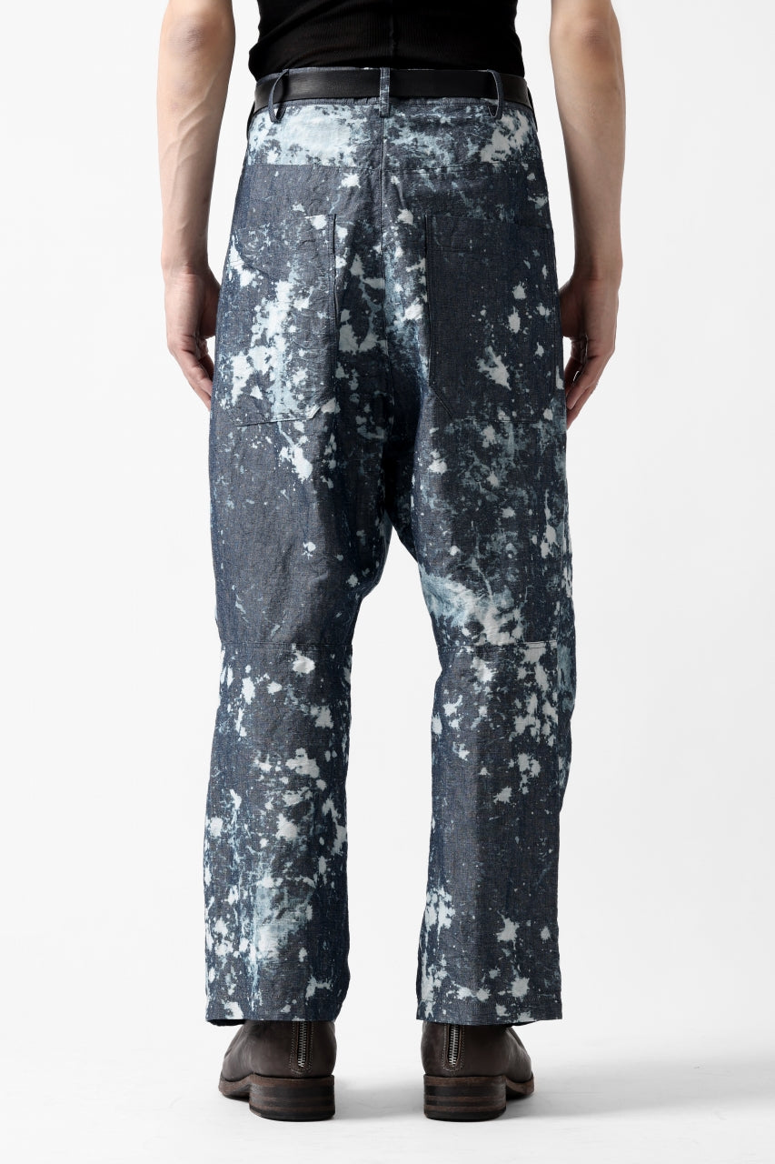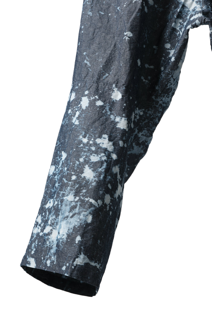 ・反物の状態でスプラッシュ状に特殊ブリーチ加工したインディゴ生地