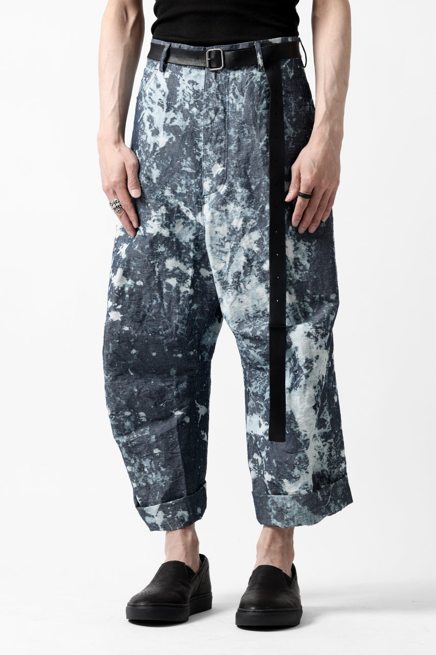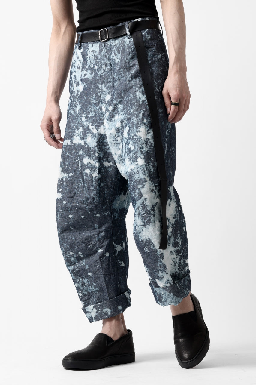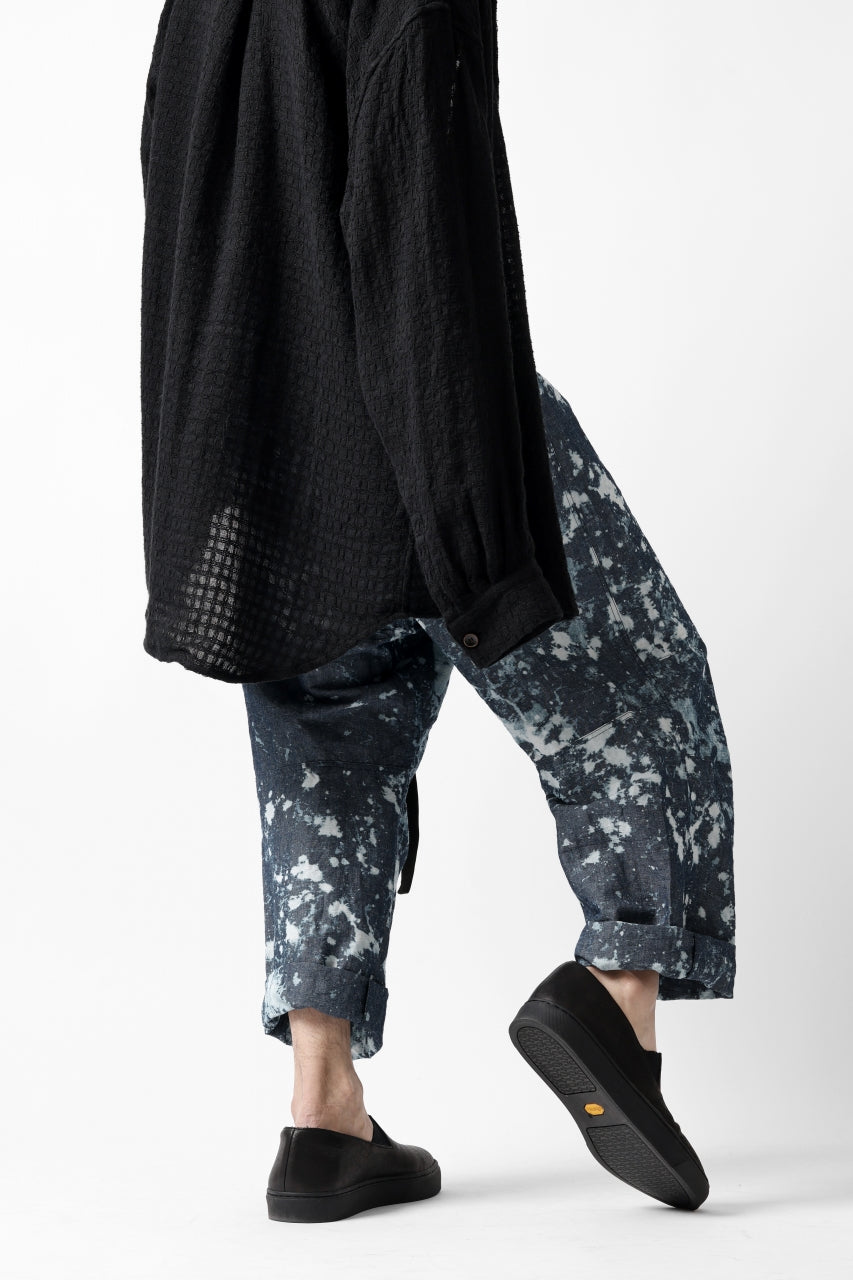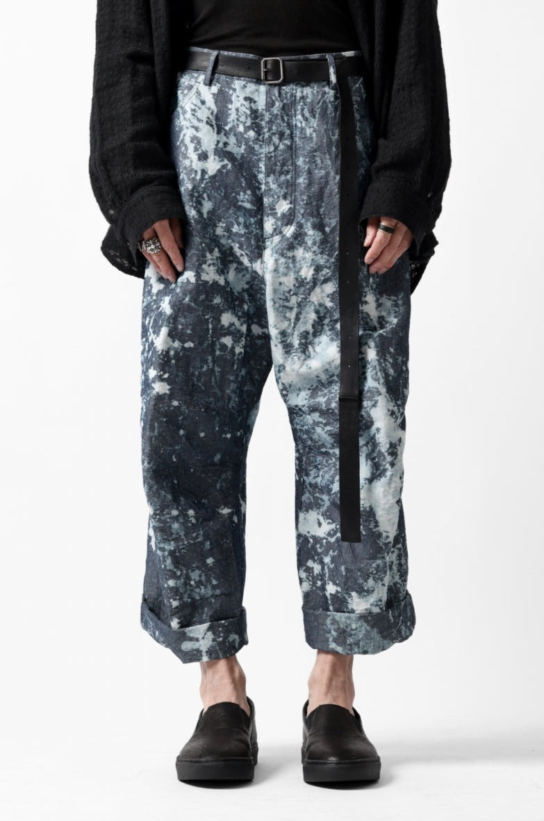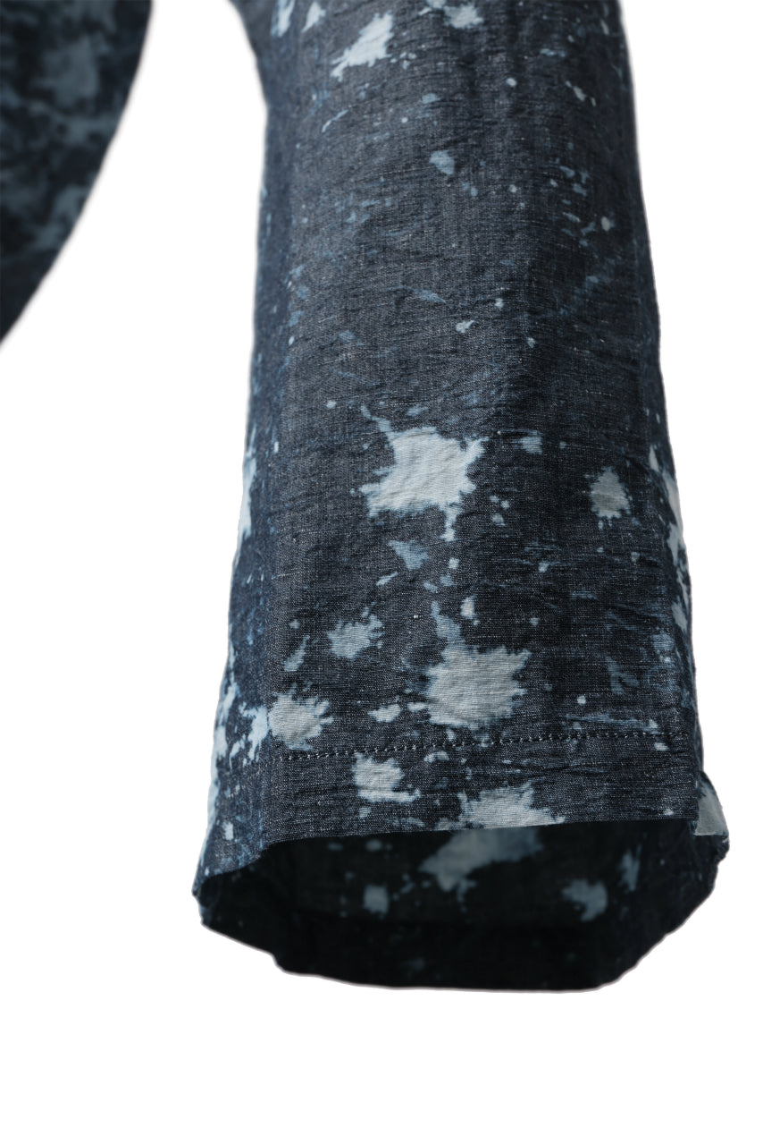 ・反物の状態でスプラッシュ状に特殊ブリーチ加工したインディゴ生地