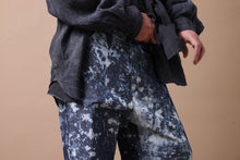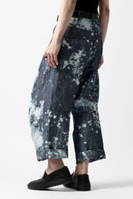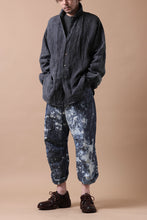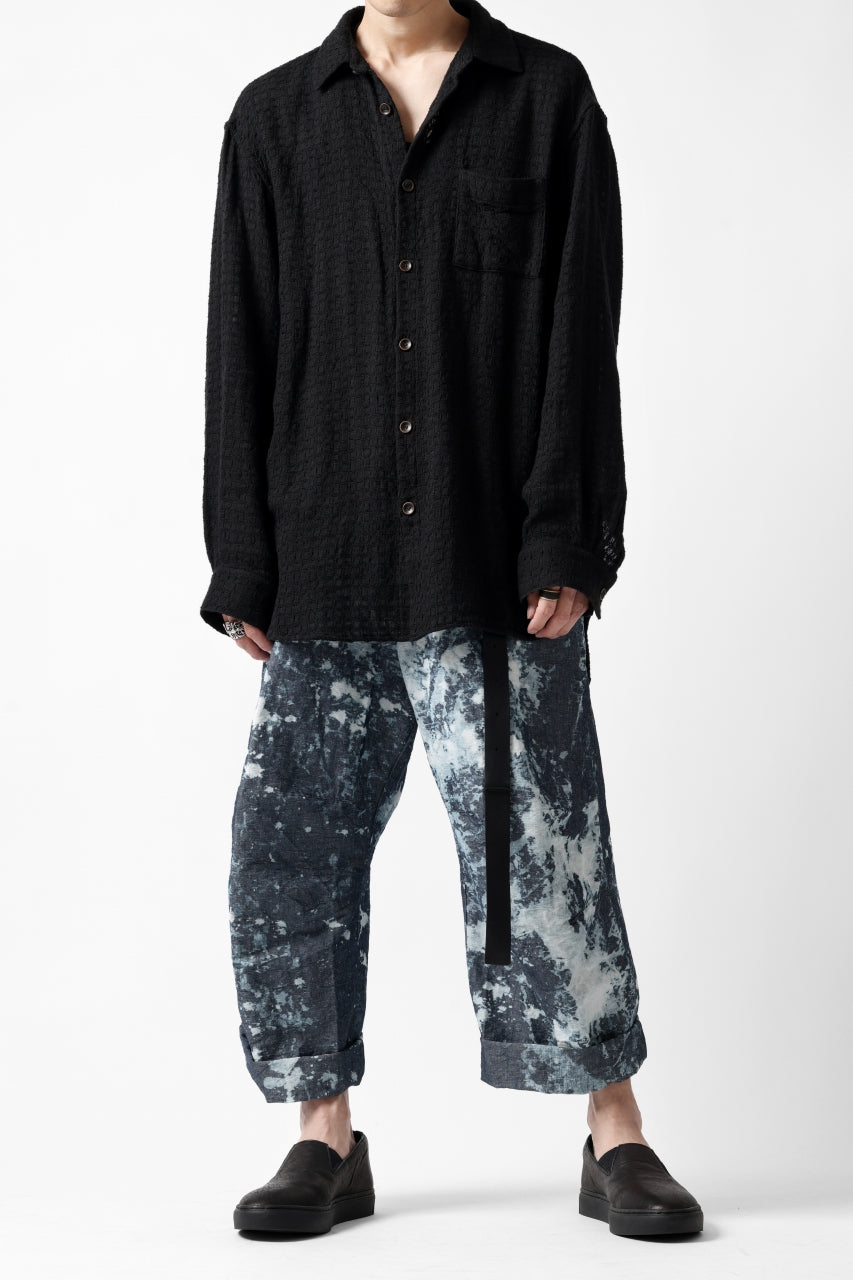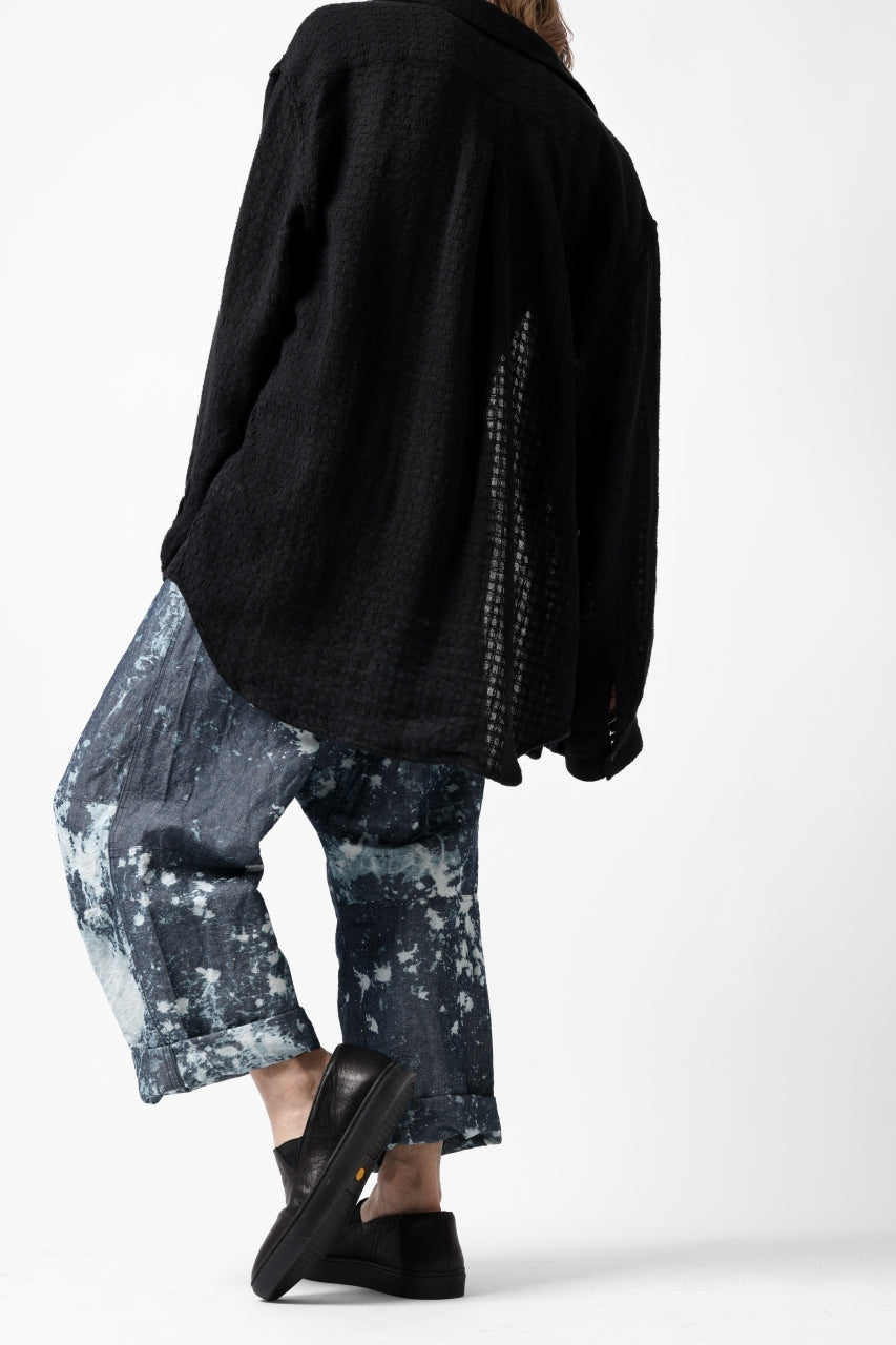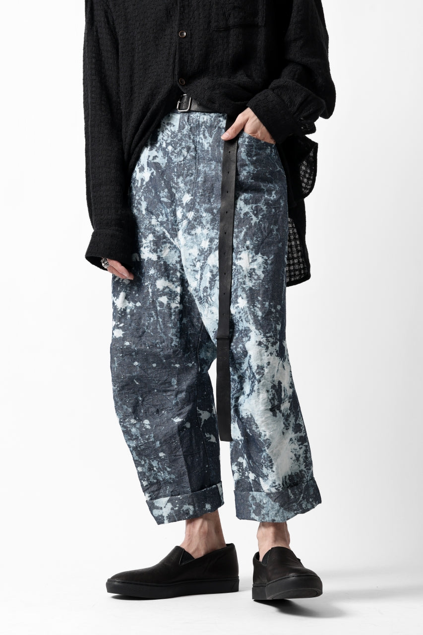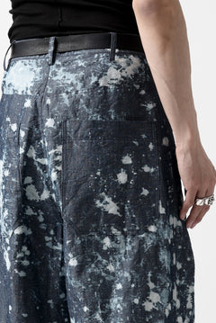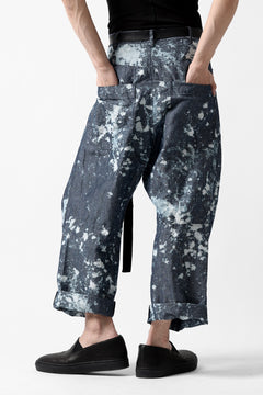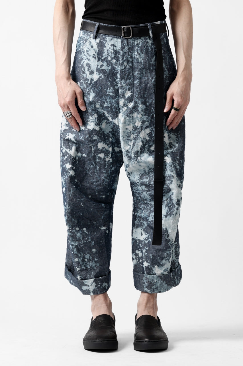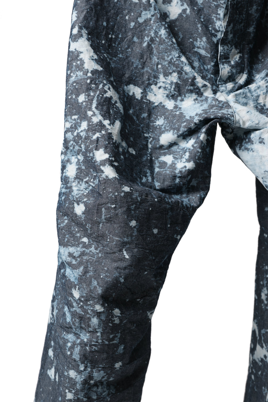 ・反物の状態でスプラッシュ状に特殊ブリーチ加工したインディゴ生地