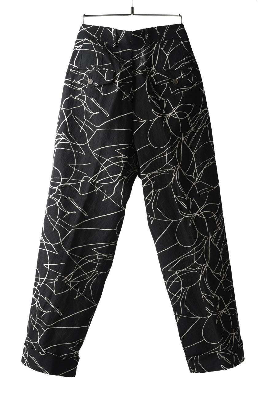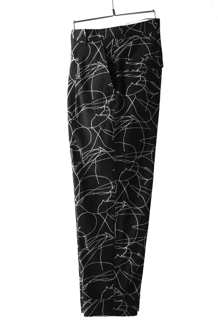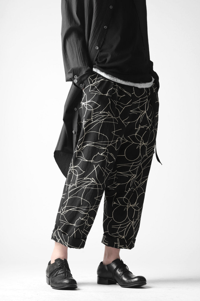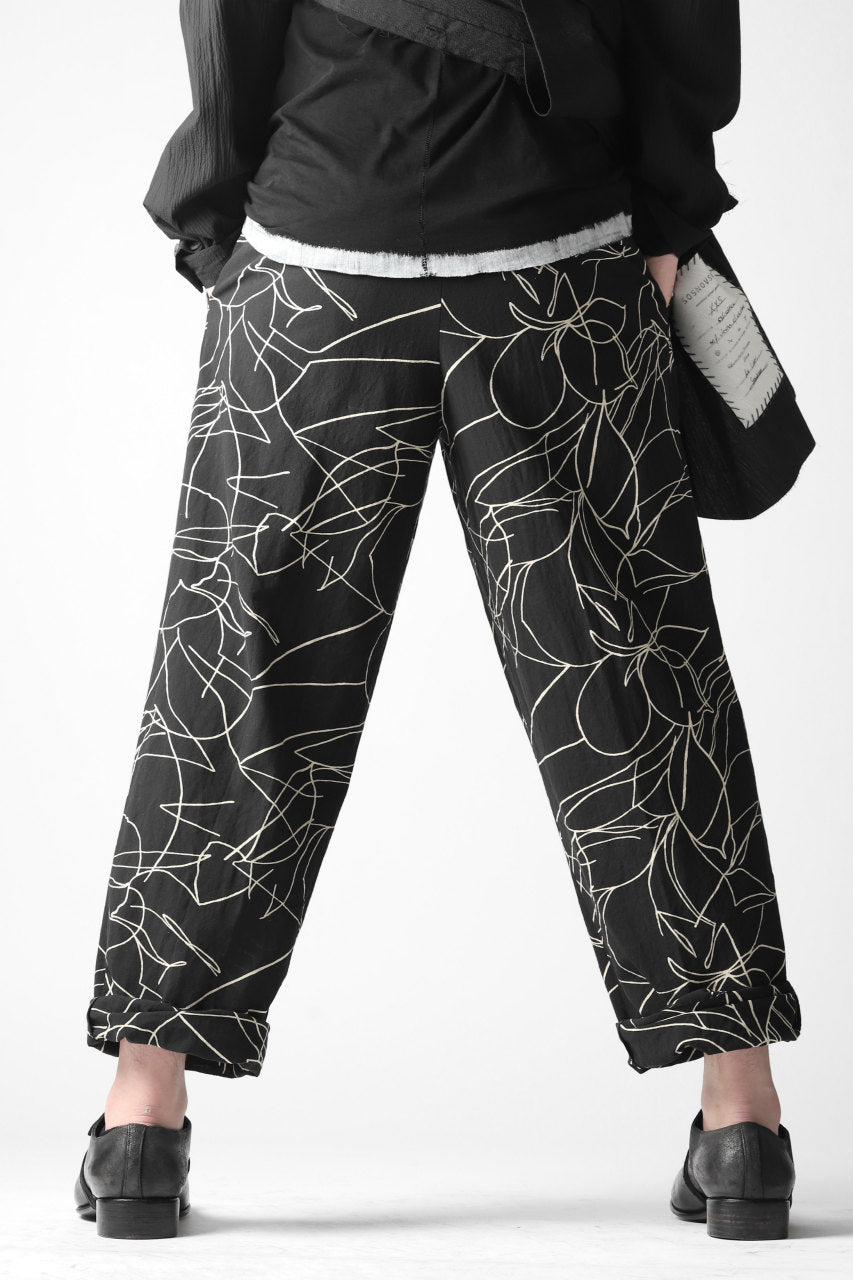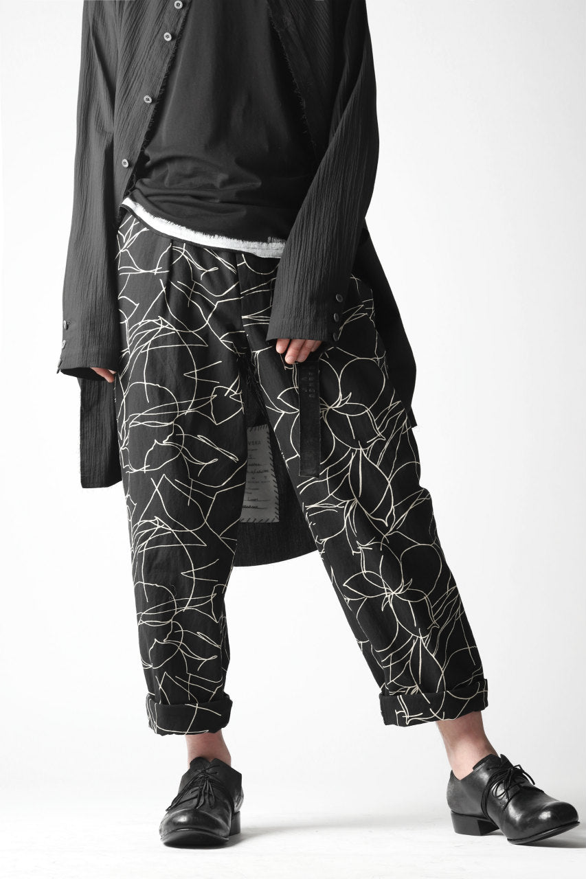 forme d'expression 20SS collectionより、メイン・ルックとなるオリジナル・テキスタイルのワイド・トラウザー。
