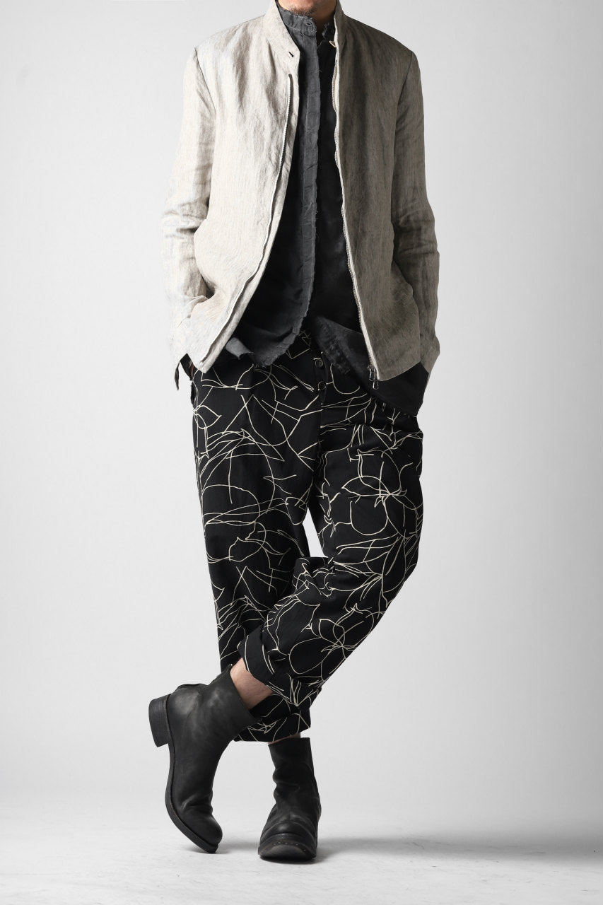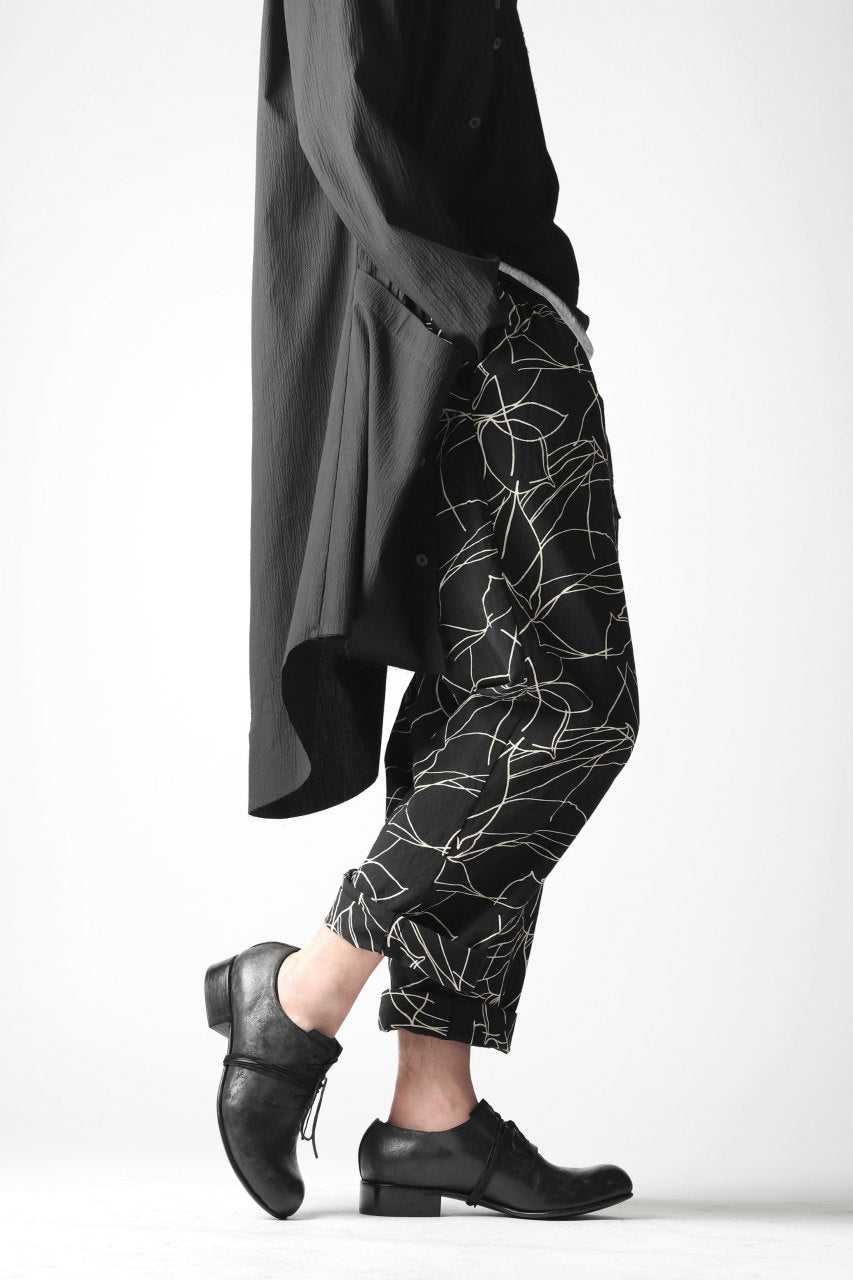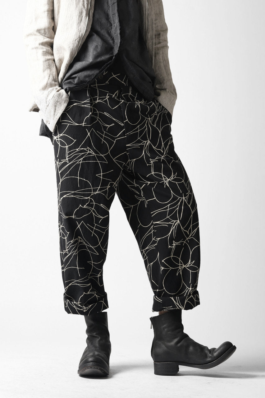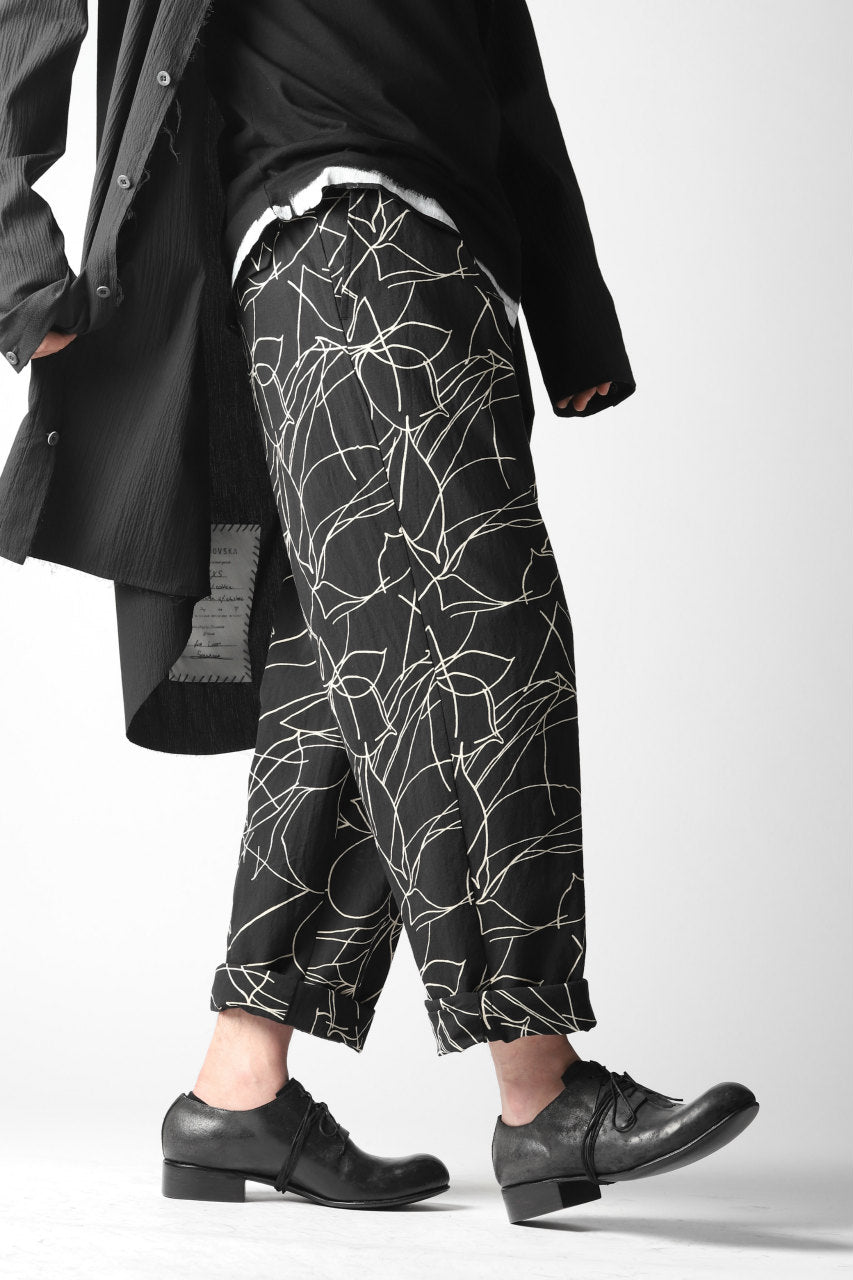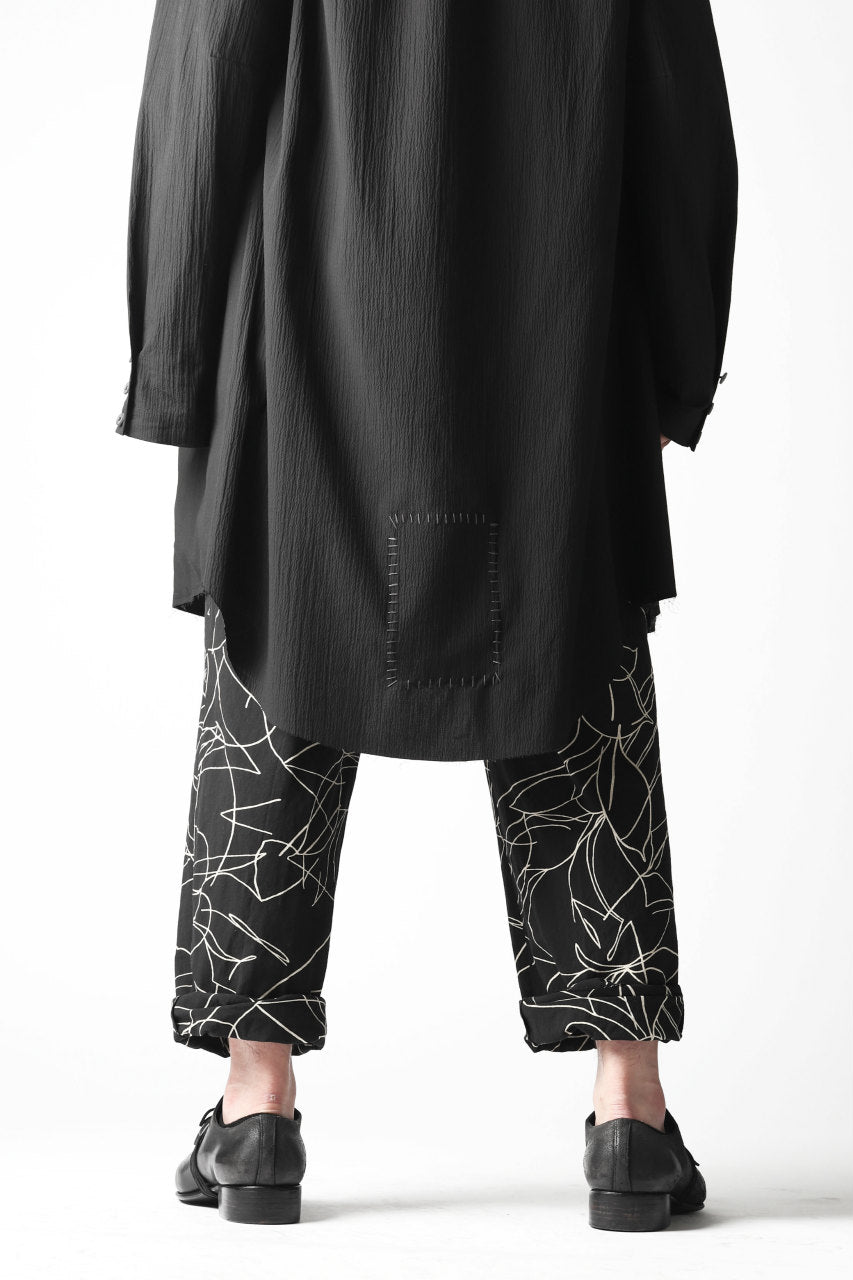 forme d'expression 20SS collectionより、メイン・ルックとなるオリジナル・テキスタイルのワイド・トラウザー。