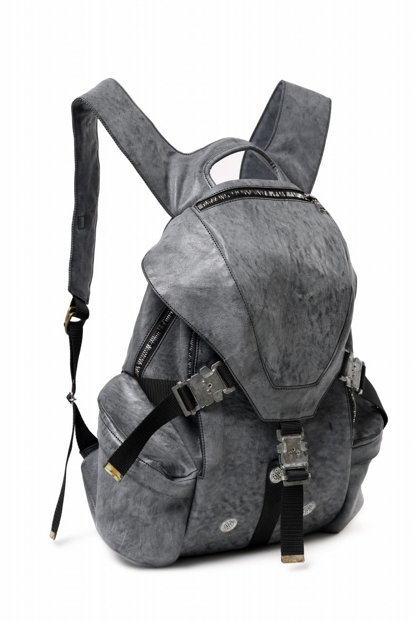 ierib exclusive Addiction Rucksack / White Waxed Shrunken Horse (BLACK)