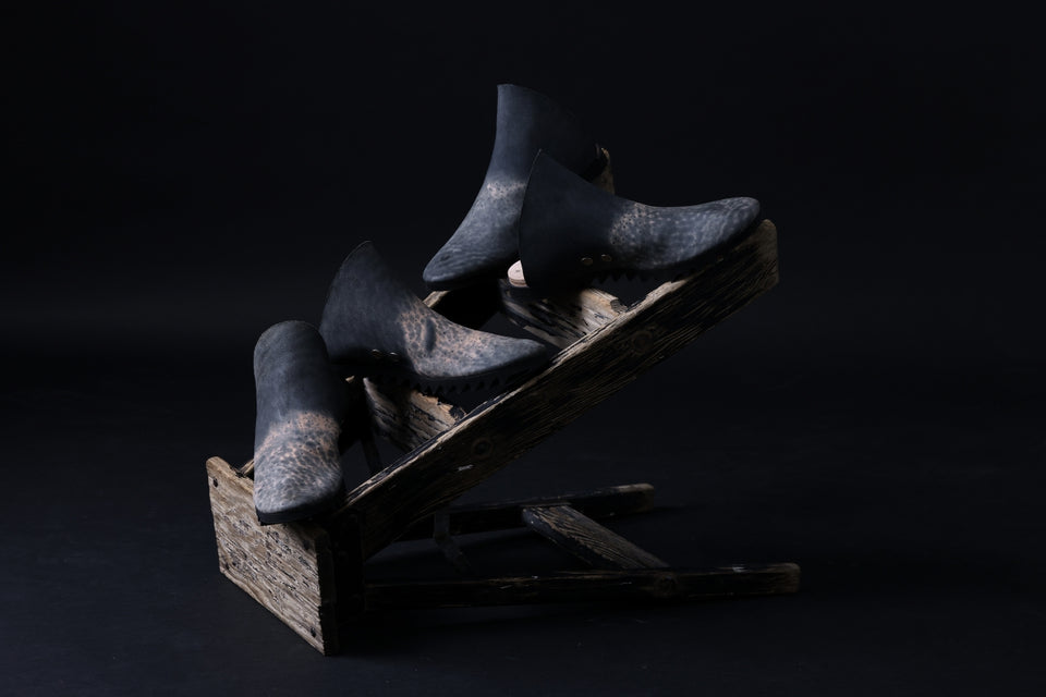 ・アッパーを革一枚で成形、ミニマルなフォルムのレザースリッポン