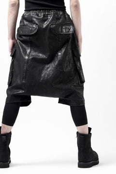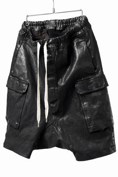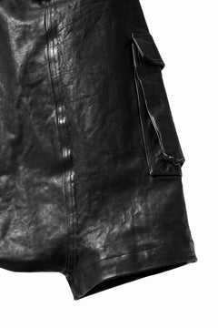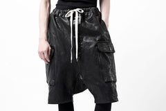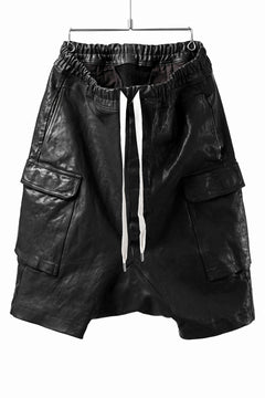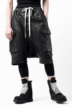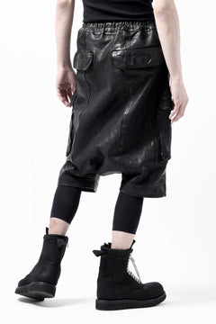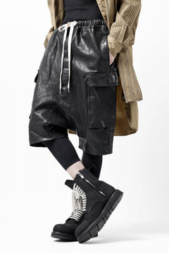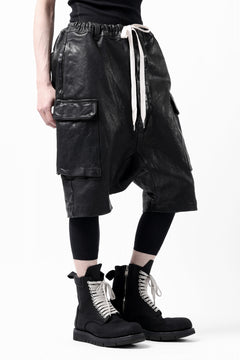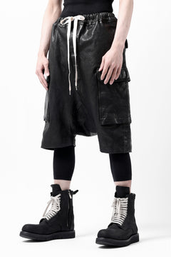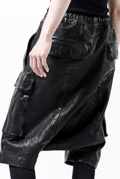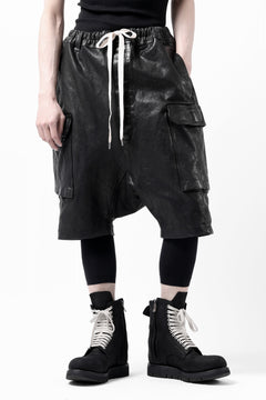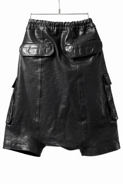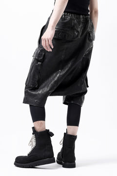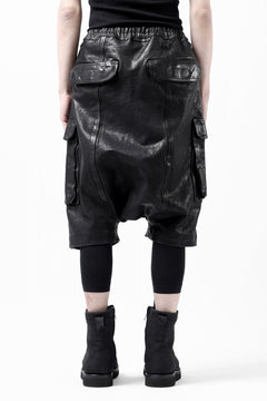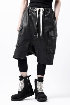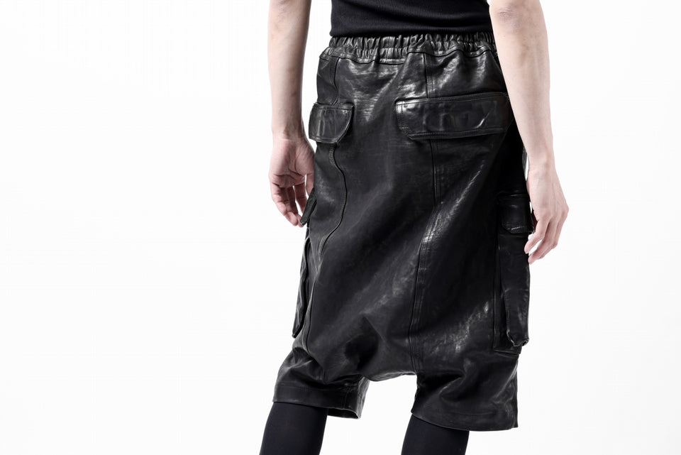 ISAMU KATAYAMA BACKLASH MARYAM LEATHER SARROUEL SHORTS / GARMENT DYED - ITALY KIP (BLACK)