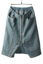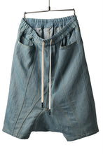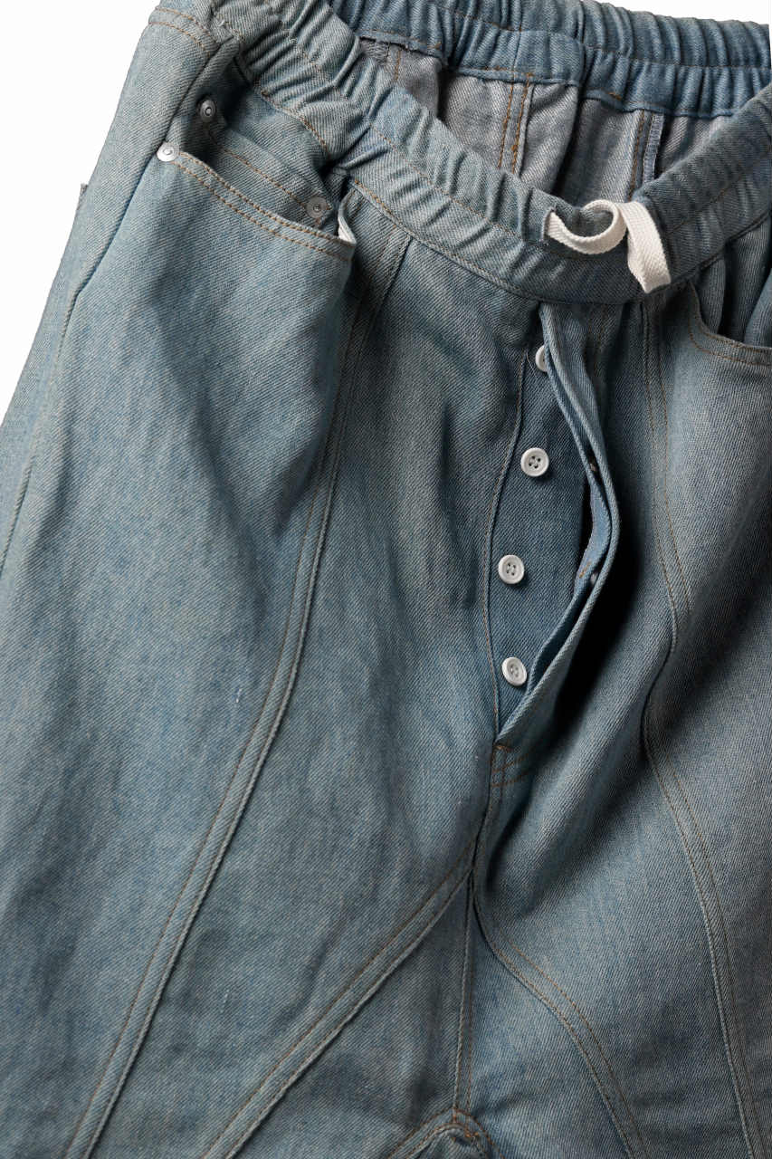 ISAMU KATAYAMA BACKLASH SARROUEL SHORT PANTS / COTTON LINEN DENIM (INDIGO)