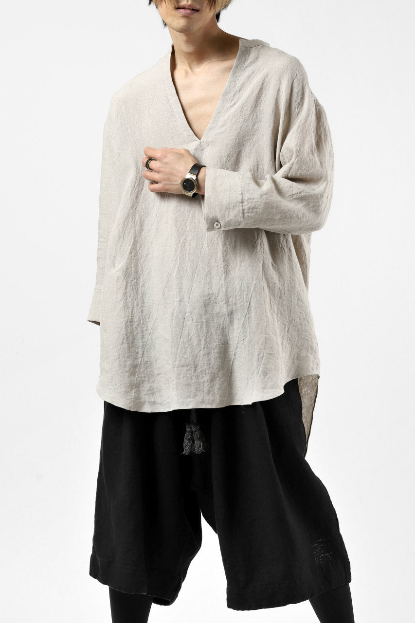 ISAMU KATAYAMA BACKLASH SOFT LINEN SKIPPER SHIRT (BEIGE)