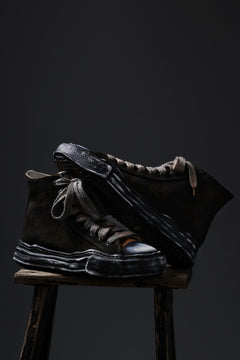 ISAMU KATAYAMA BACKLASH xx Maison MIHARA YASUHIRO “PETERSON” OG SOLE STEER SUEDE GARMENT-DYED HIGH-TOP SNEAKER (BLACK)