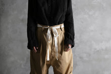 ウェストの上げ下げや、裾のロール・アップ等でポジションを任意で変え、様々なスタイリングに適応します。
