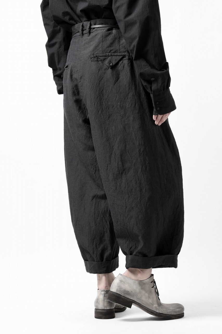 KLASICA GOSSE TWO TUCKED TROUSERS / SUMMER CHAMBRAY WOOL-LINEN (SHADOW)