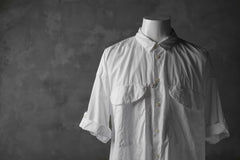 KASICA 20SS colletionより、ミリタリーとモードの要素をバランス良く融合したショート・スリーブ・シャツ。