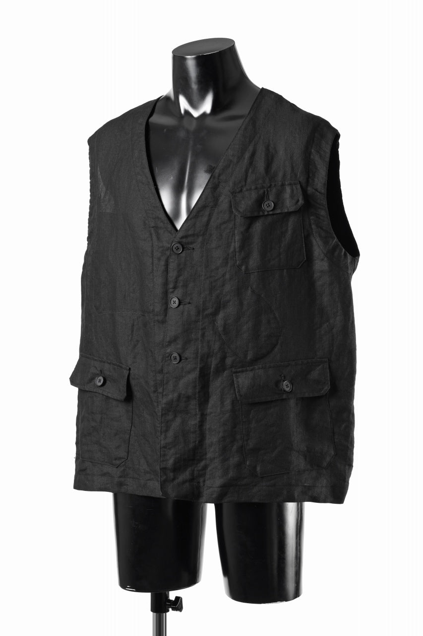 KLASICA "MALAKOFF" DECONSTRUCTED WORK WEAR VEST / CRISP FINISH AIRLY MICRO DOBBY (BLACK)