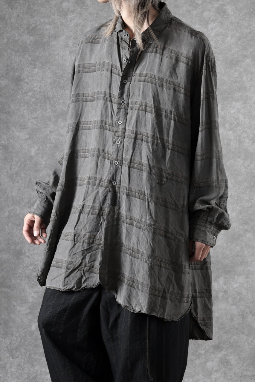 KLASICA SHORT COLLAR ROOMY SHIRTS / DRAPE & SMOOTH TEXTILE (GRAYSH DYE CHECK)