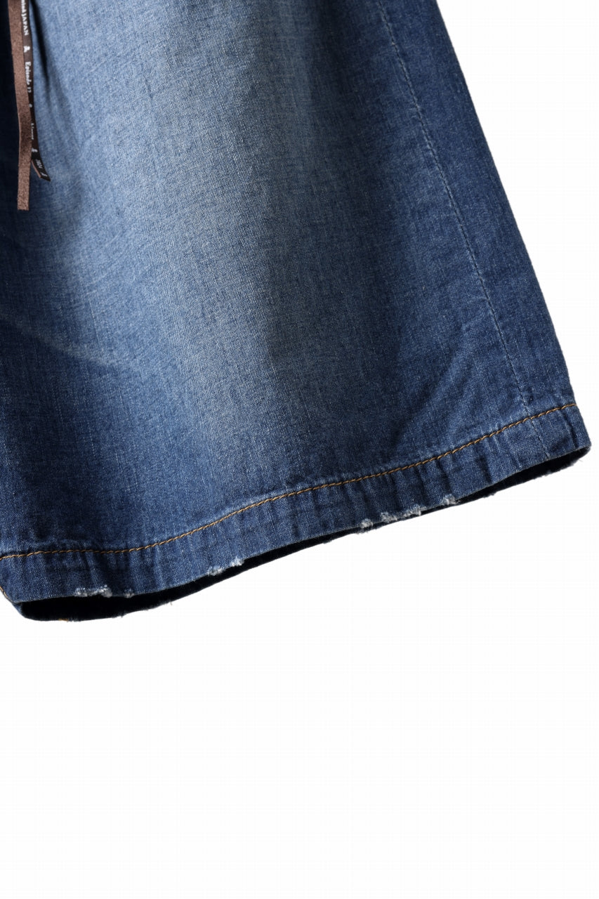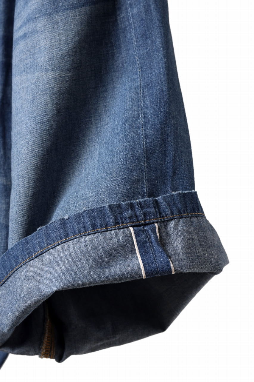 セルビッジシャンブレーを用いたワイドデニムショーツです。