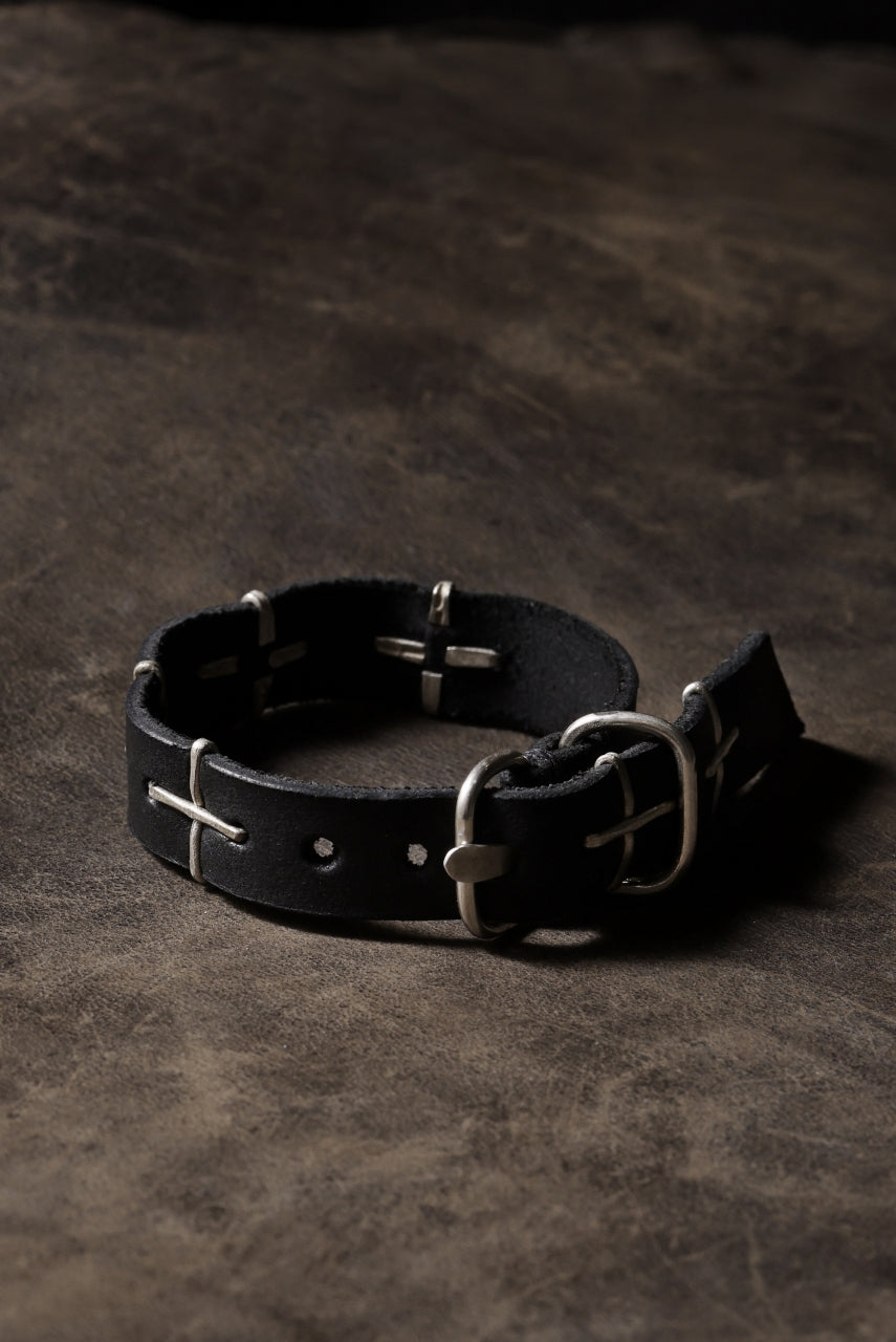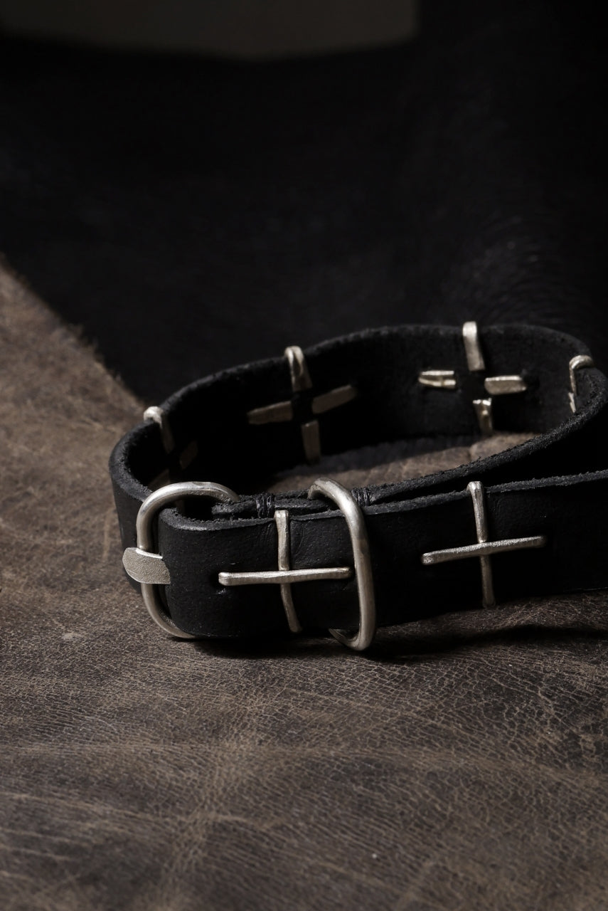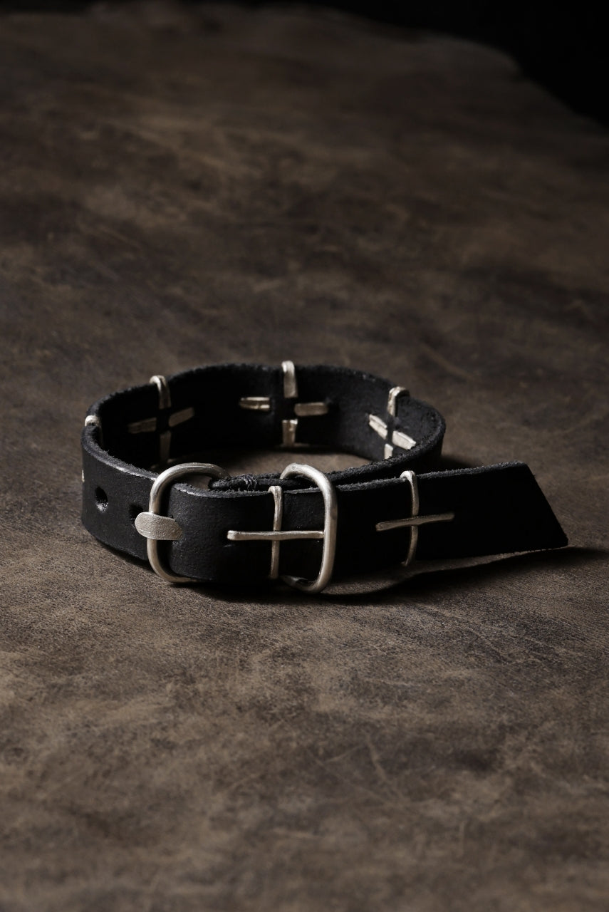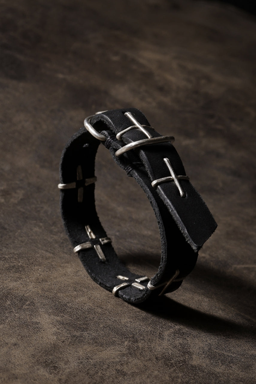 m.a+ thin silver cross studded wrist band / A-F2BL1 GR2,0 (BLACK)