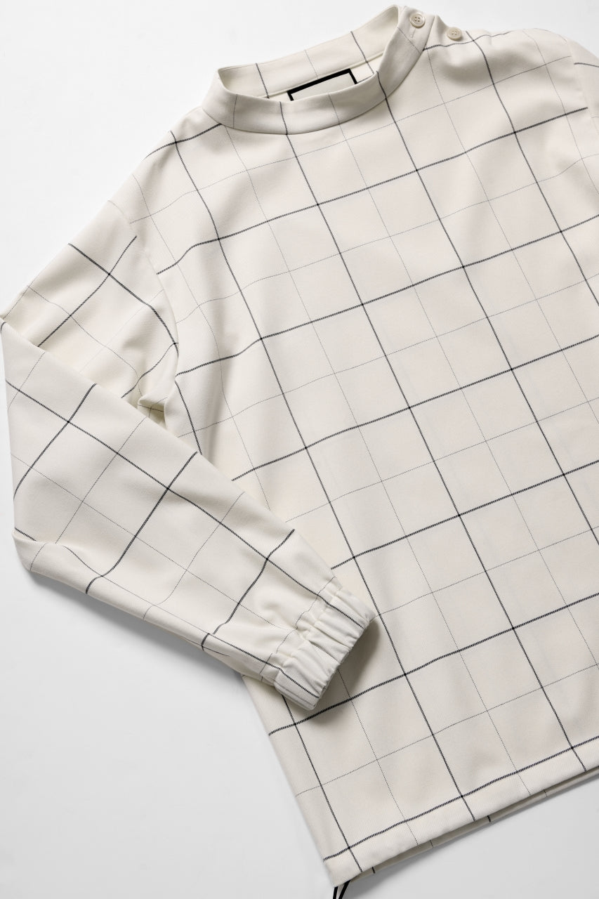 N/07 exclusive MOCK NECK PULLOVER / WINDOWPANE CHECK TR TWILL (IVORY)