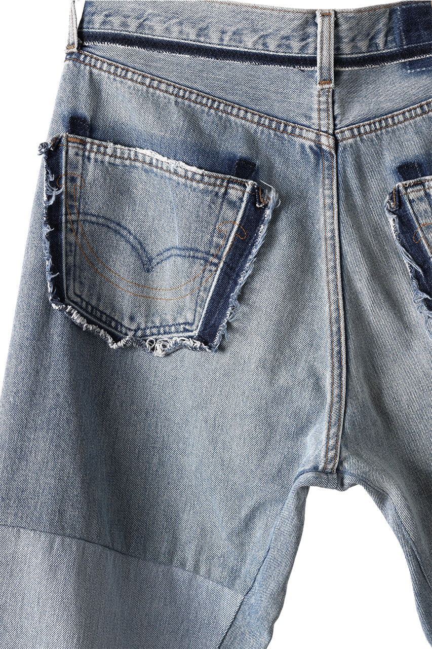・複数のヴィンテージデニムから採取したパーツを繋合せた立体構築感と