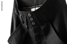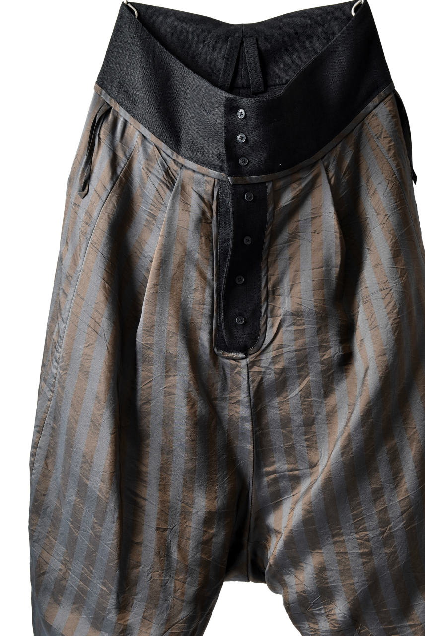 裾の釦アジャストで"絞り"を利かせた、バルーン状のワイドシルエットが特徴のボトムス。
