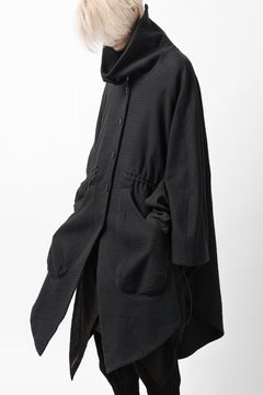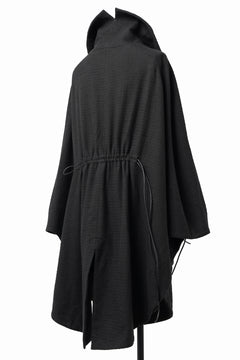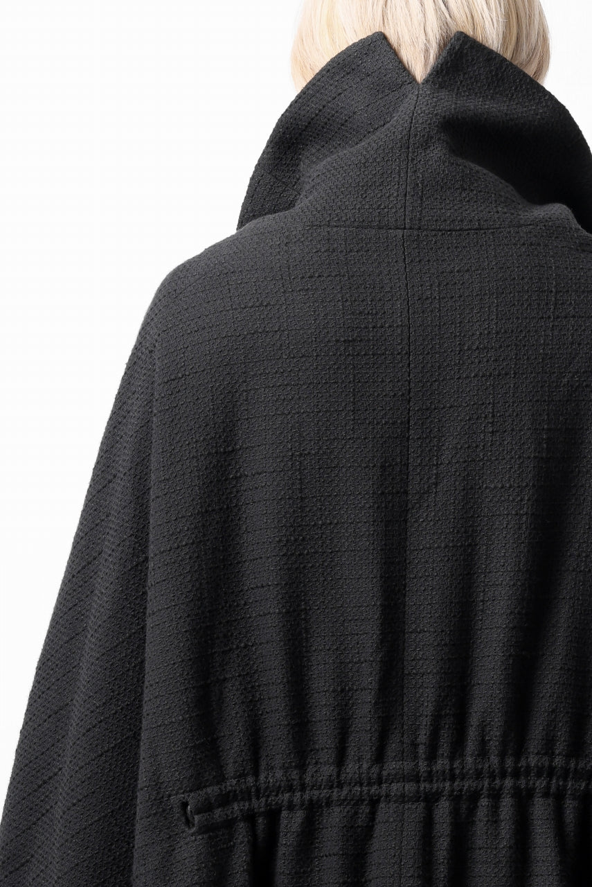 ・大きく立ち上がるネックラインとモッズパーカ風のディティール
