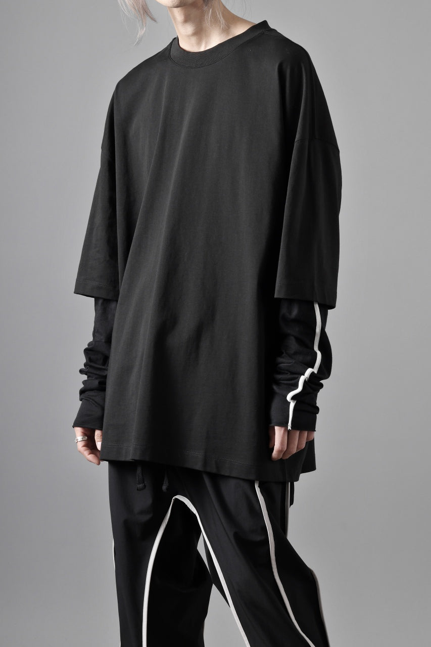 thom/krom OVERSIZED LAYER PIPING SLEEVE TEE / COTTON JERSEY (BLACK)