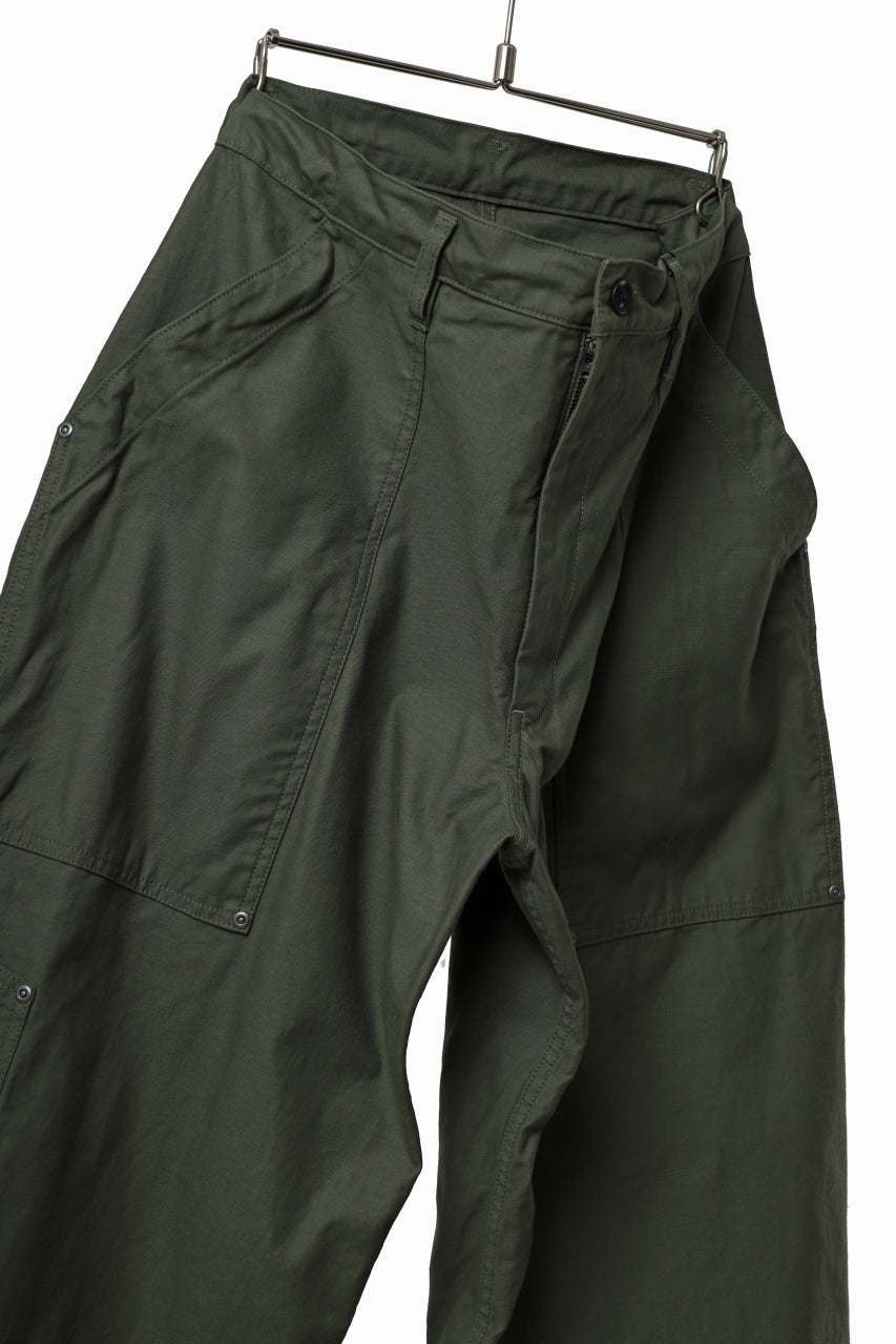 Y's WIDE STRAIGHT PANTS WORKER-DETAIL / BACK SATIN VULCANIZATION COTTON (KHAKI)