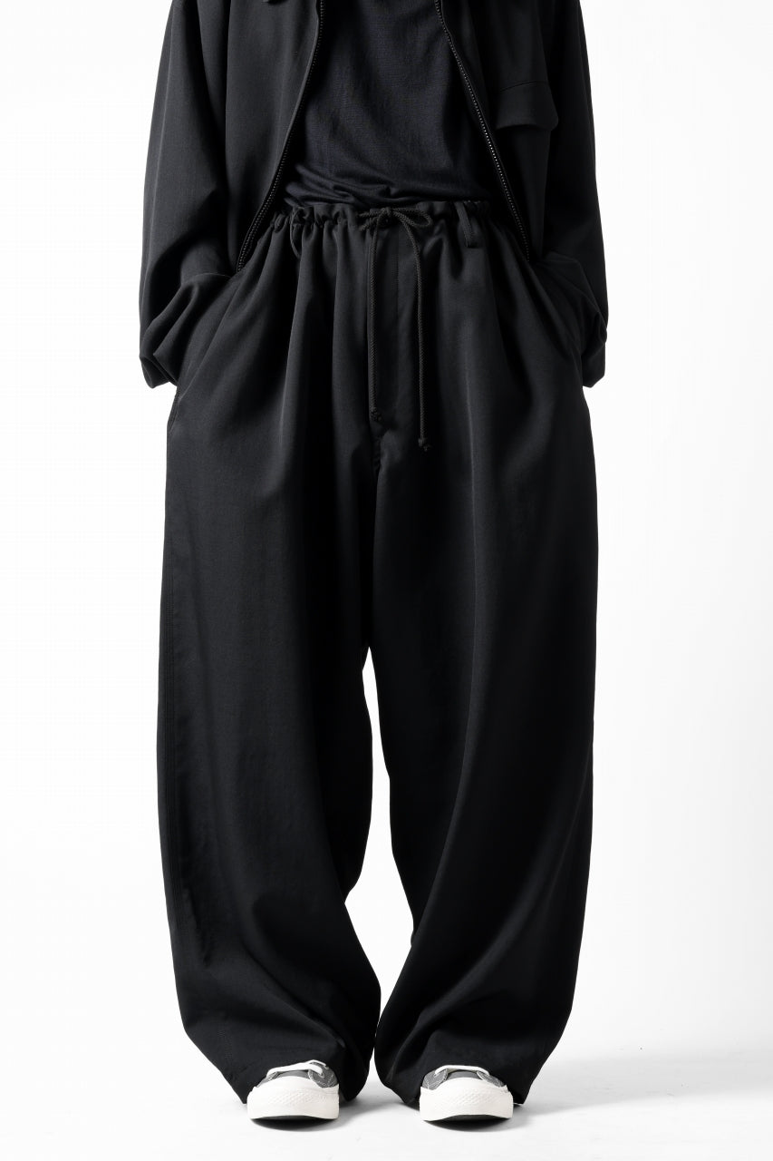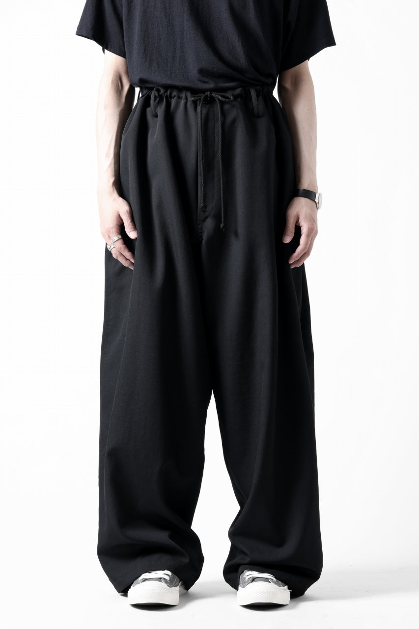 Y's for men CLASSIC STRING PANTS WITH 3-STITCH / WRINKLED GABARDINE (BLACK)