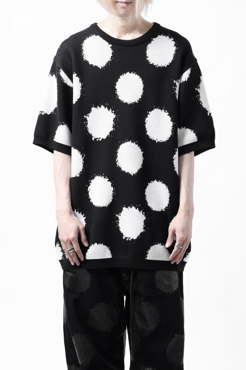 Y's.... HALF SLEEVE KNIT TOPS / DOTS JACQUARD (BLACK)