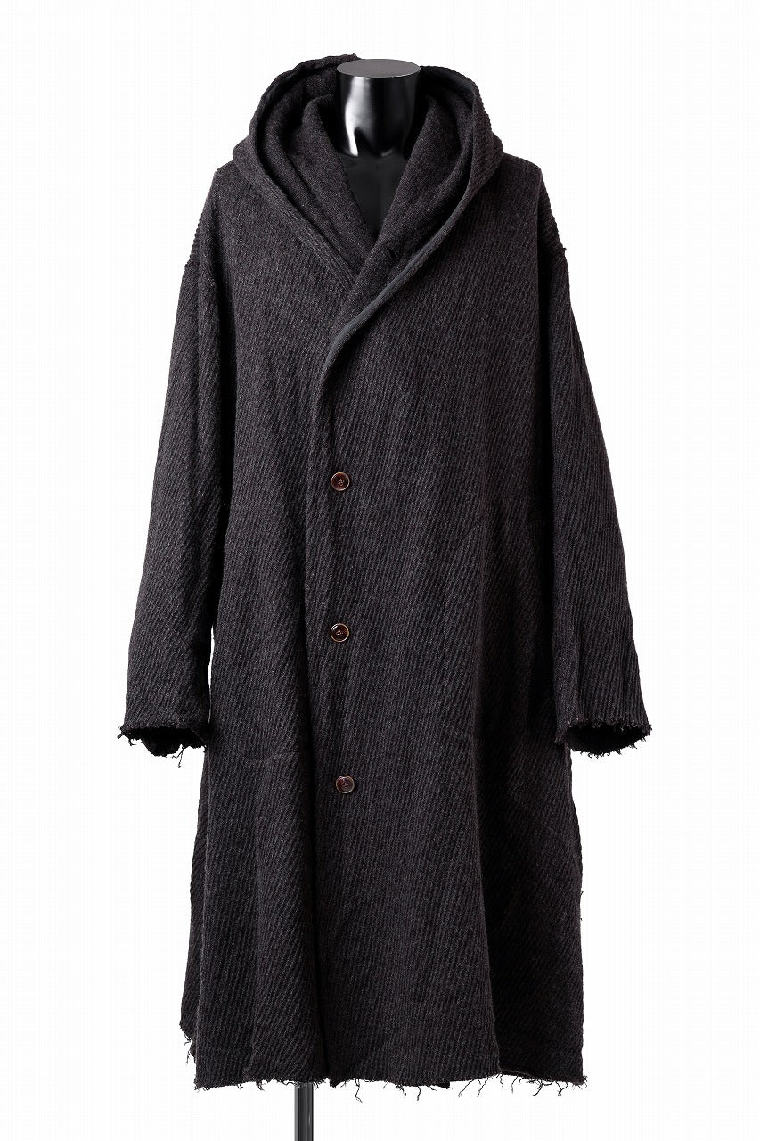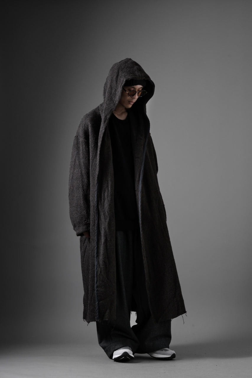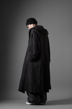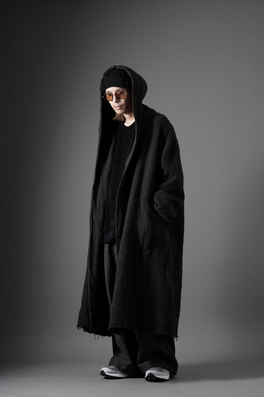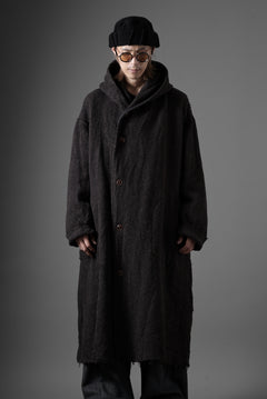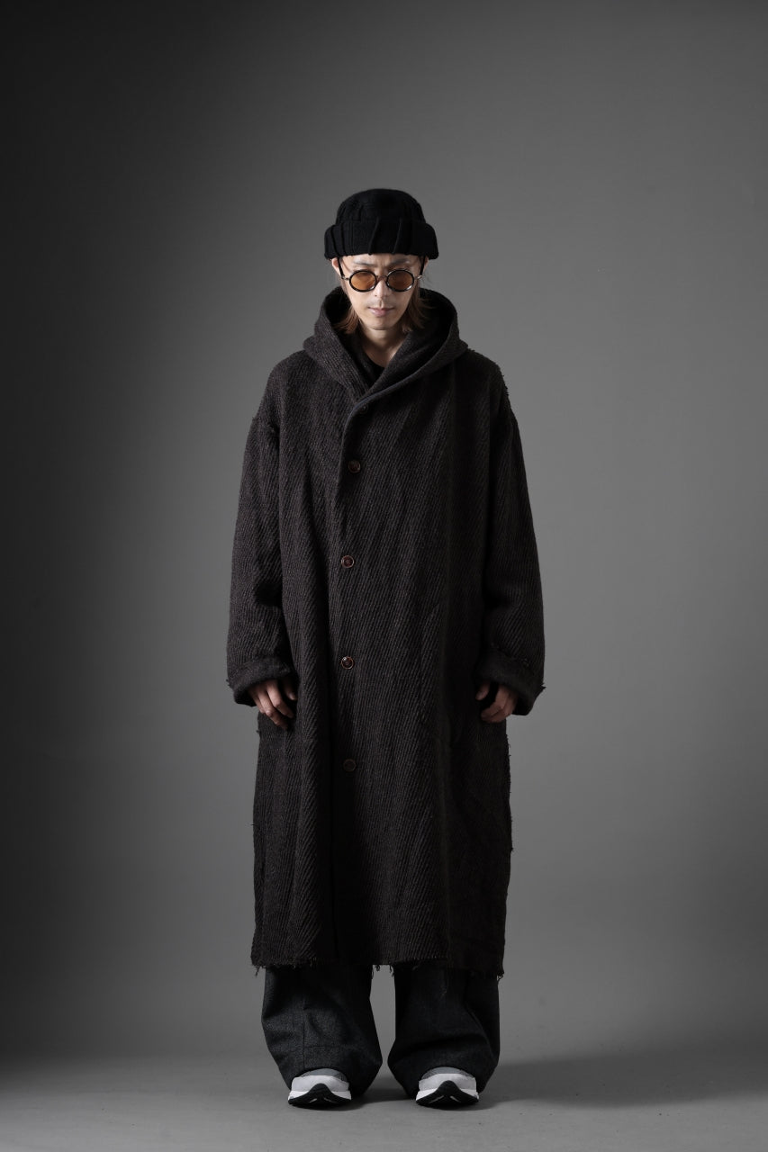 YUTA MATSUOKA hoodie gown coat / wool linen kersey (dark brown)