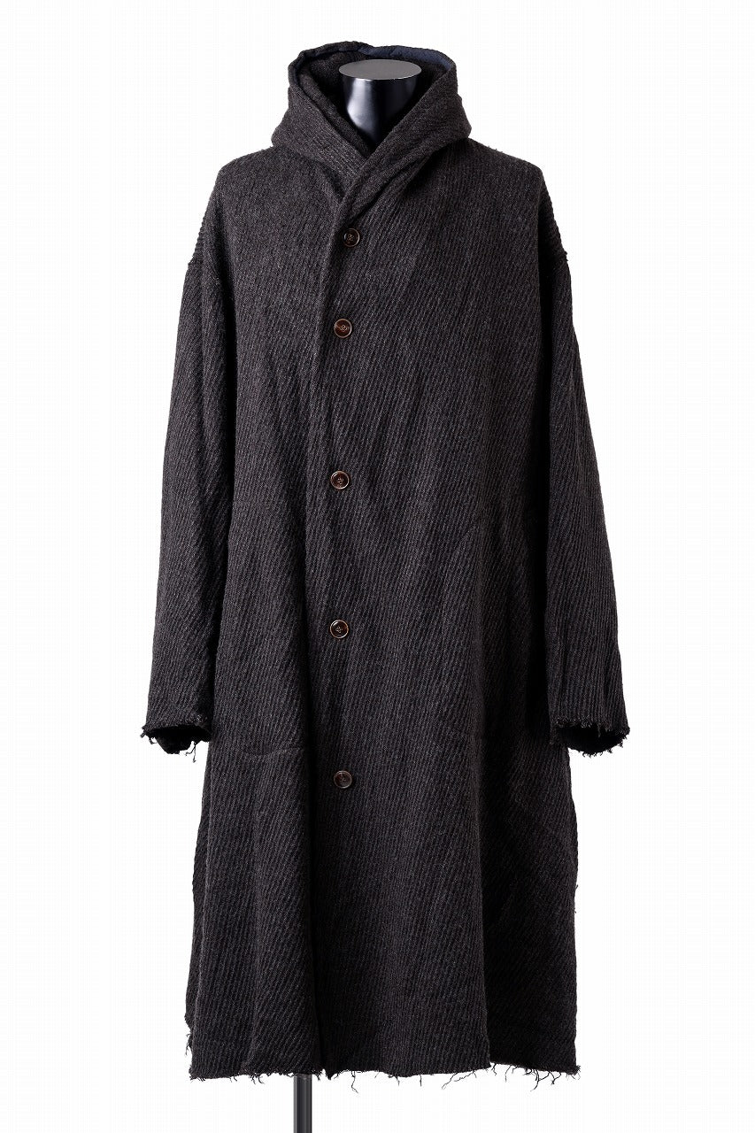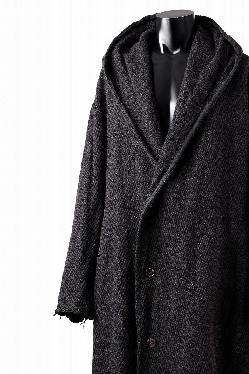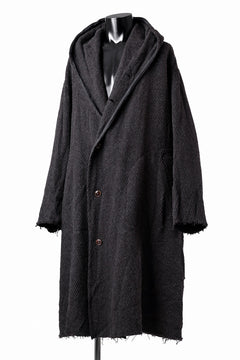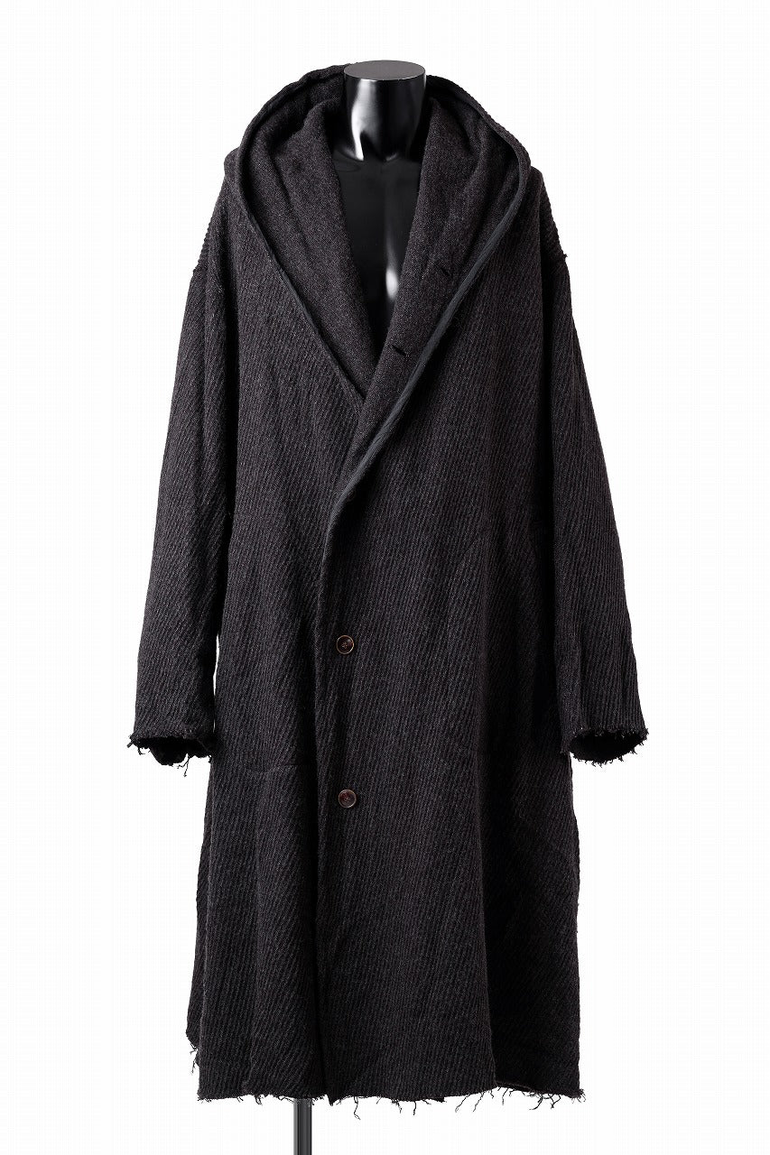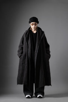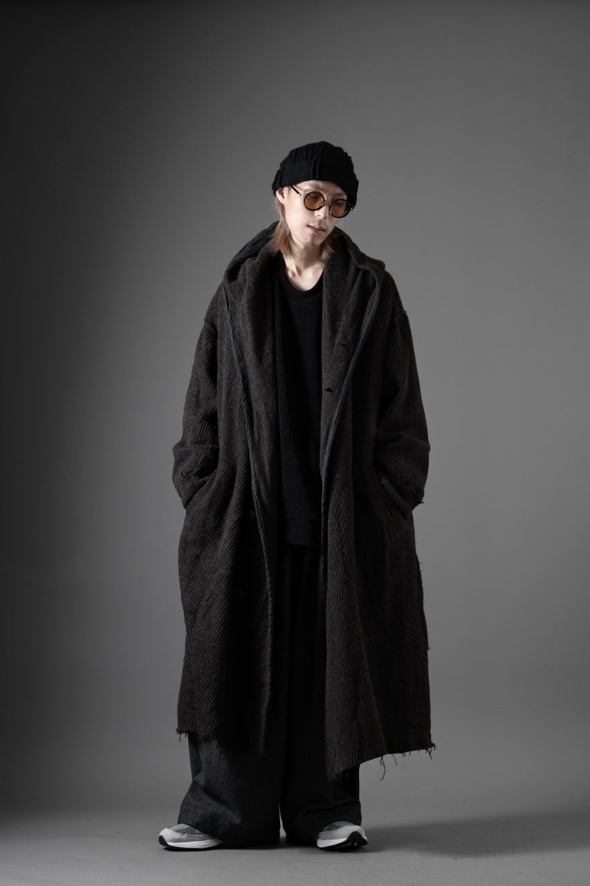 YUTA MATSUOKA hoodie gown coat / wool linen kersey (dark brown)