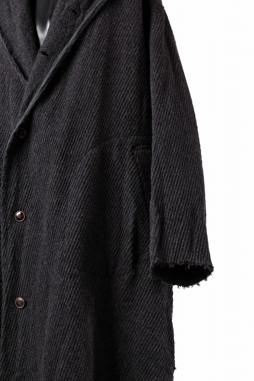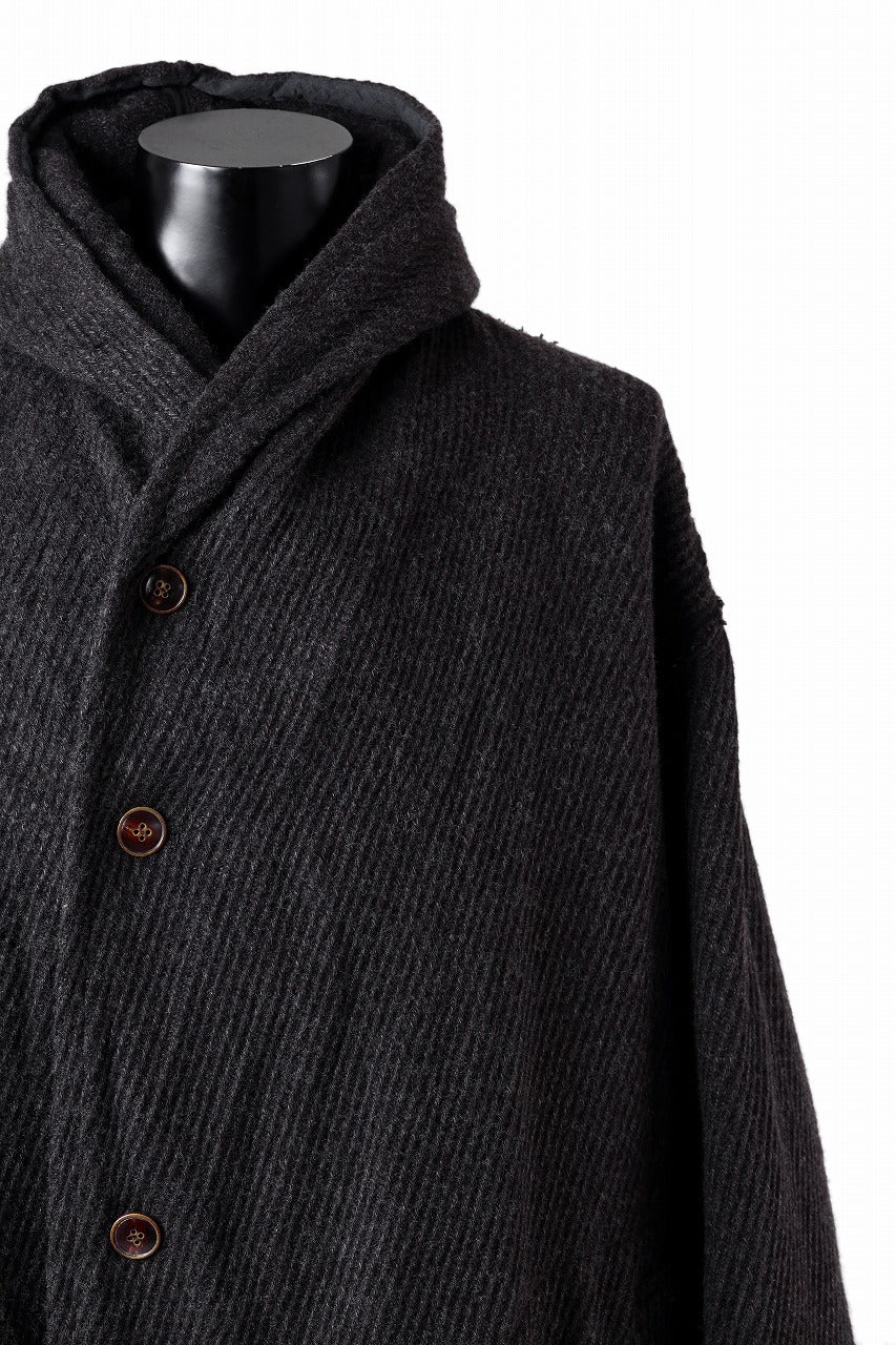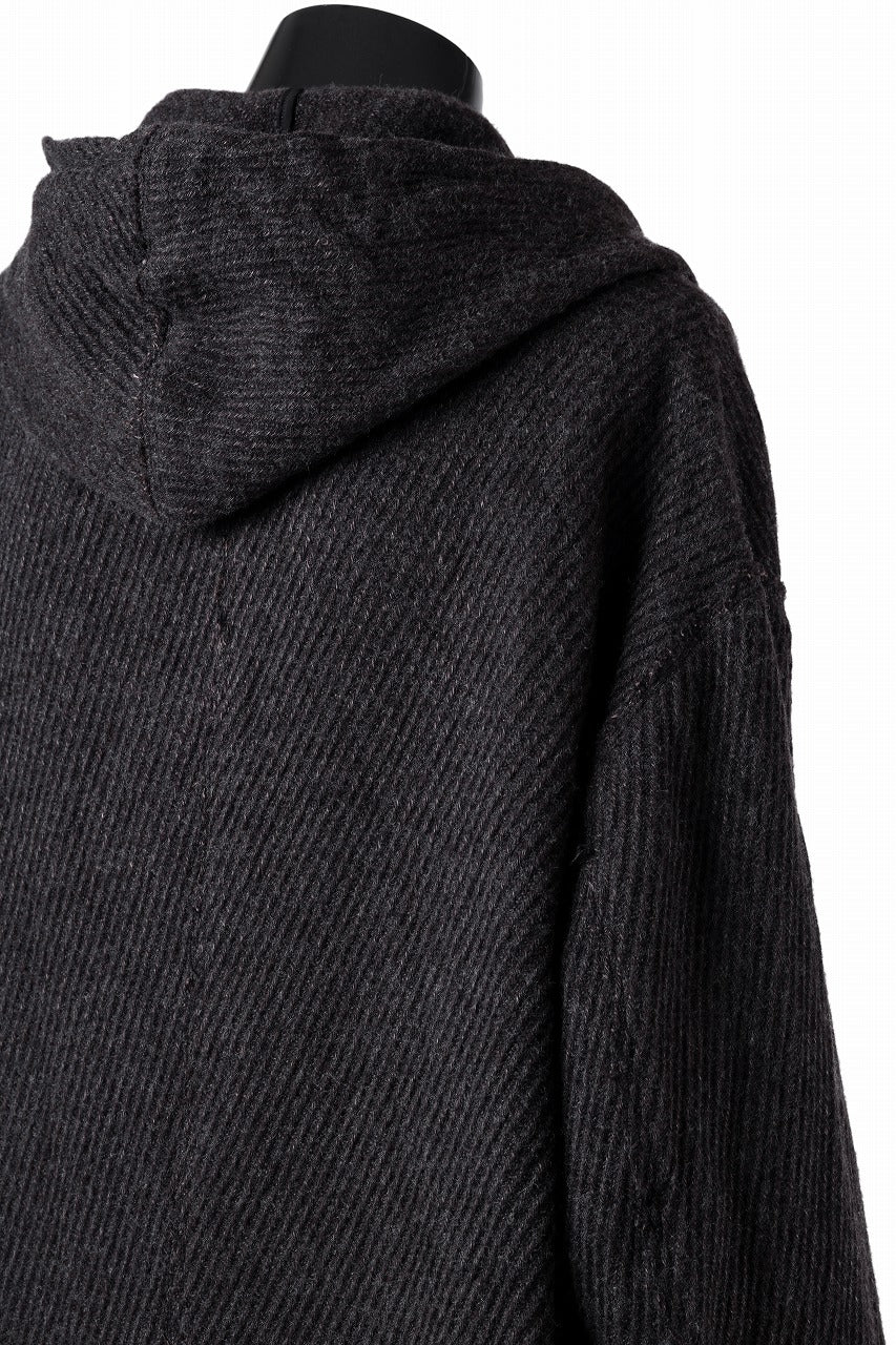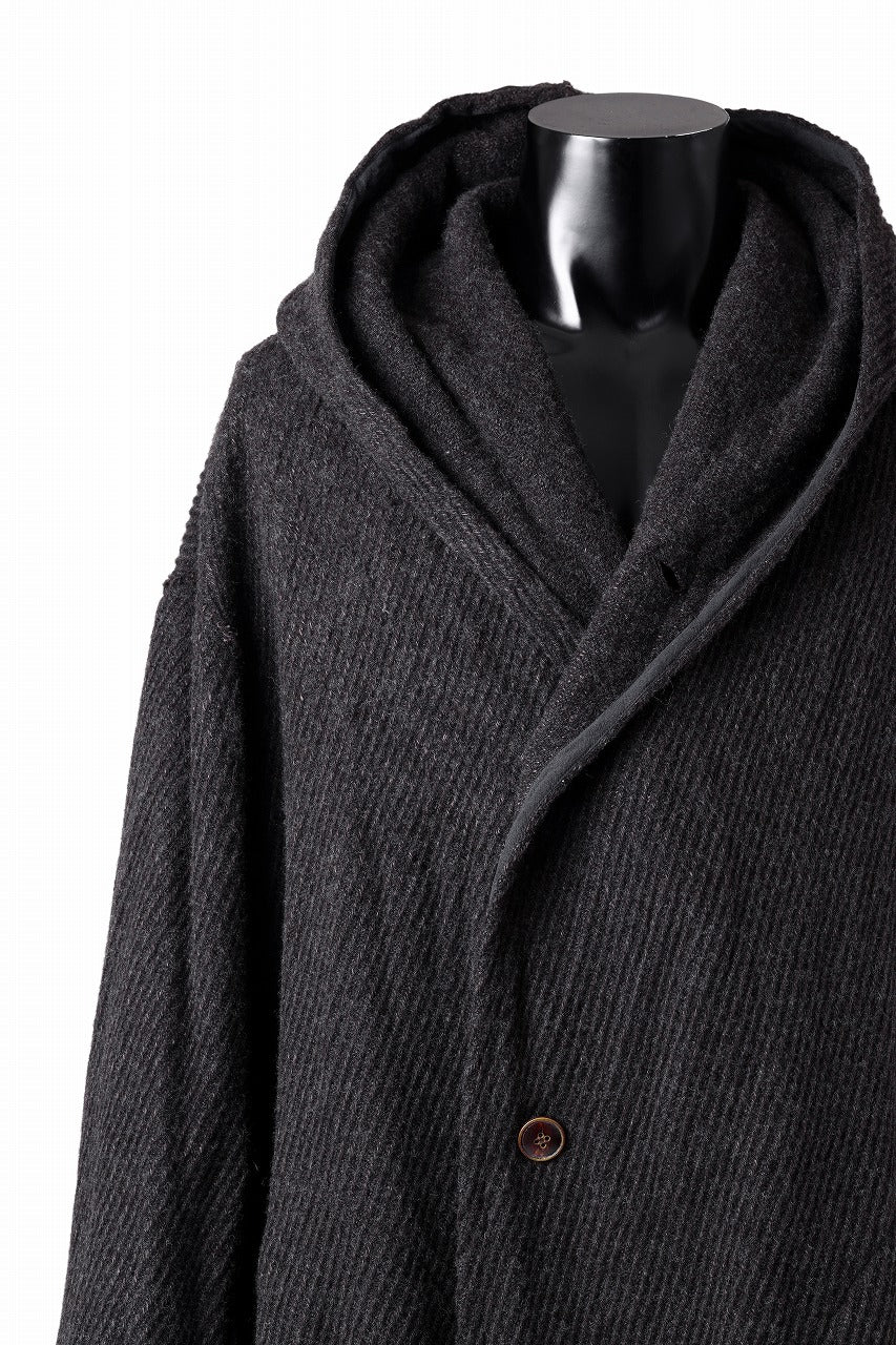 YUTA MATSUOKA hoodie gown coat / wool linen kersey (dark brown)