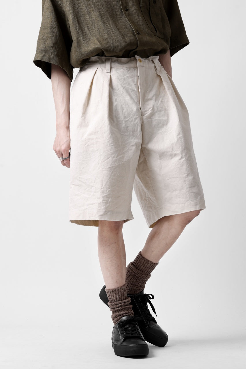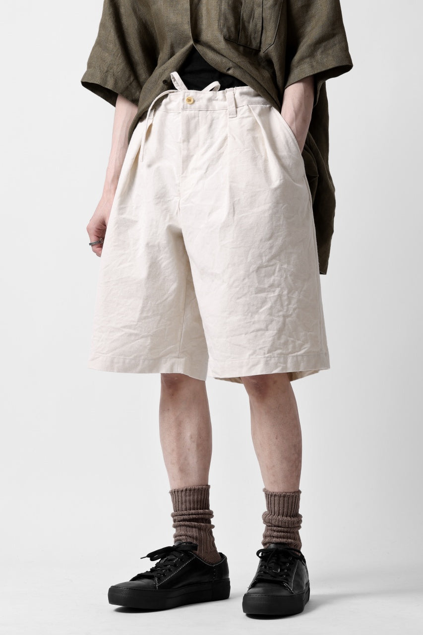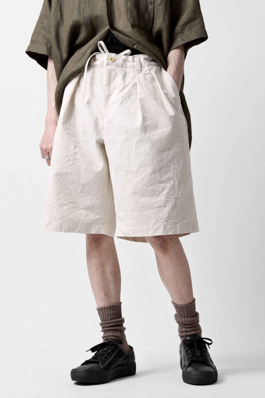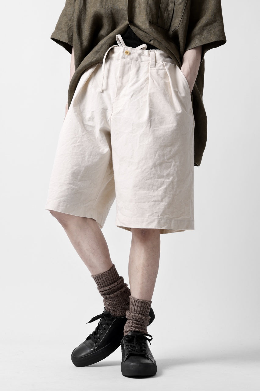 CAPERTICA 2-TUCK WIDE SHORTS / ARMY CANVAS (KINARI)