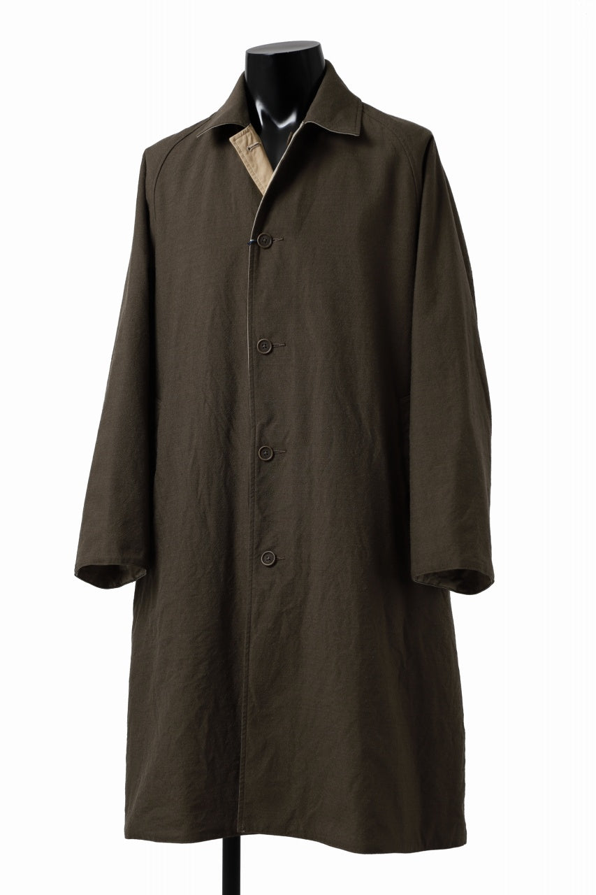 CAPERTICA REVERSIBLE MAC COAT / WASHABLE WOOL GABA & VENTILE COTTON WEATHER (GREY KHAKI)