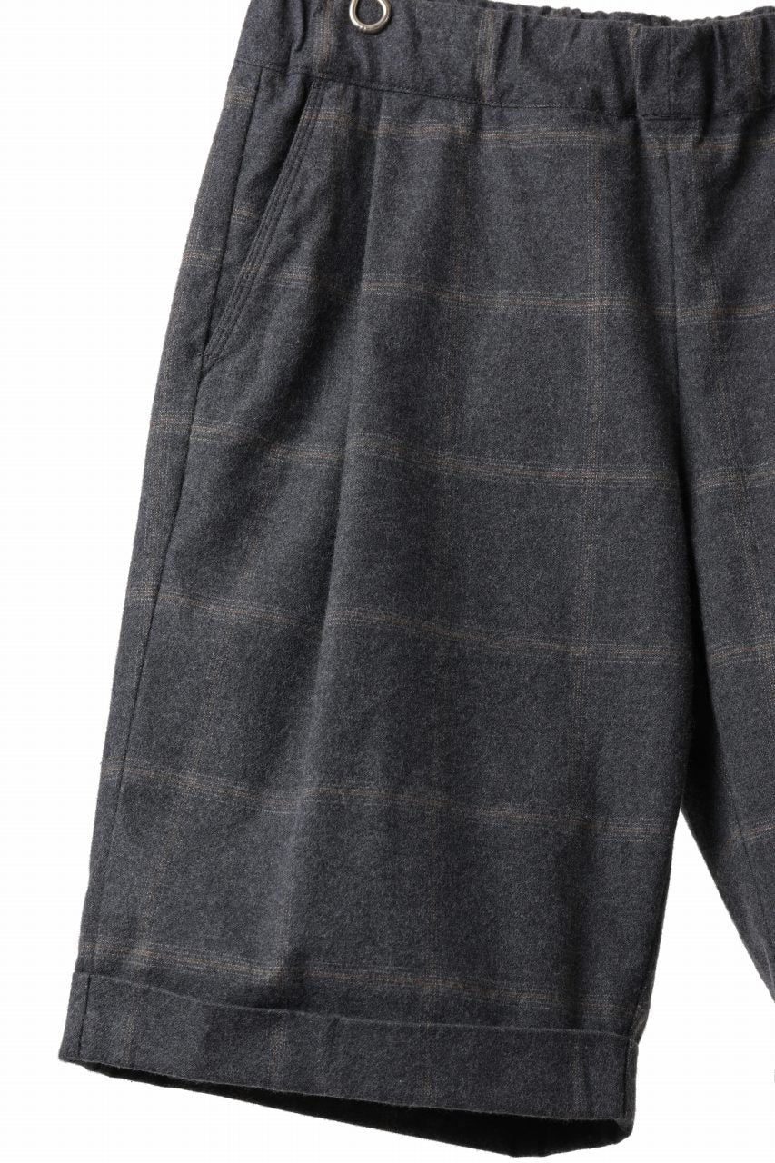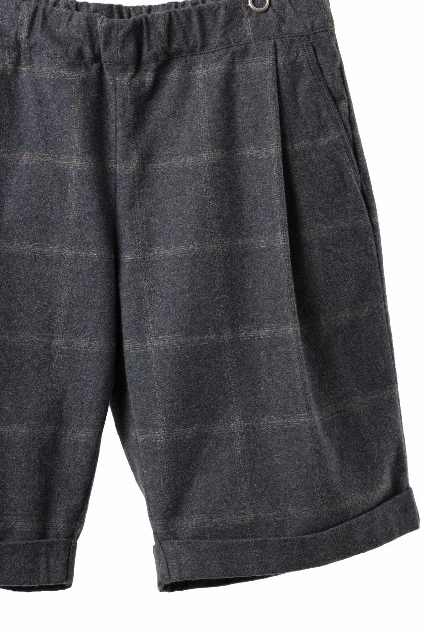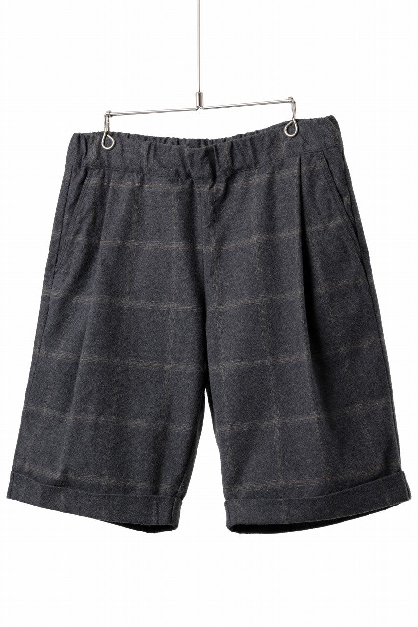 CAPERTICA TUCK EASY SHORTS / DARK MELANGE CHECK FLANNEL (CHARCOAL)
