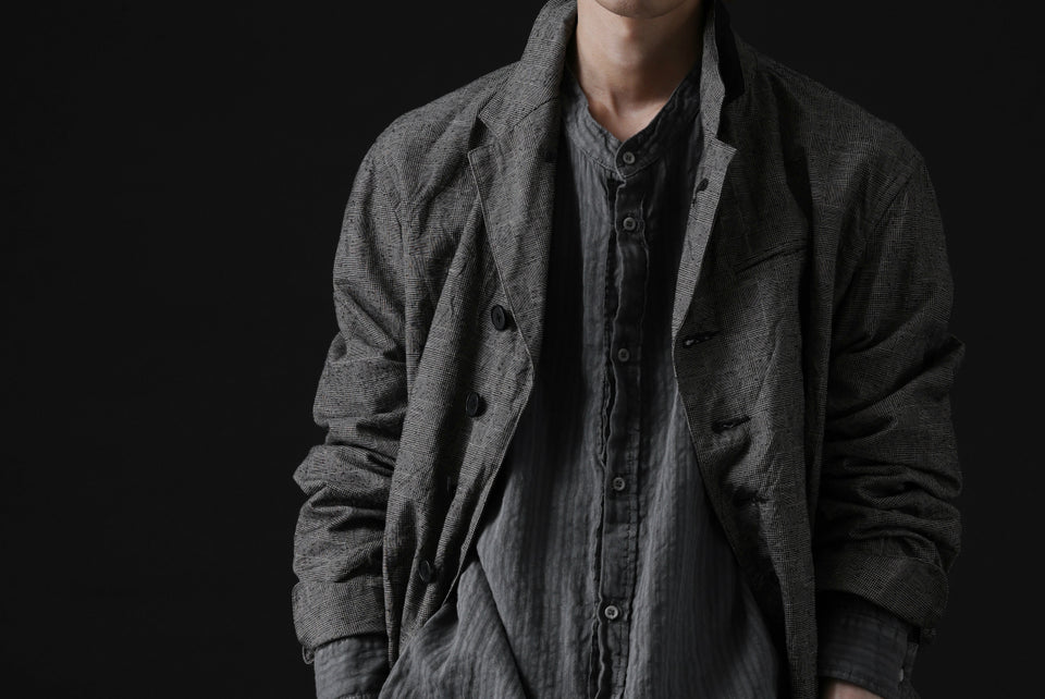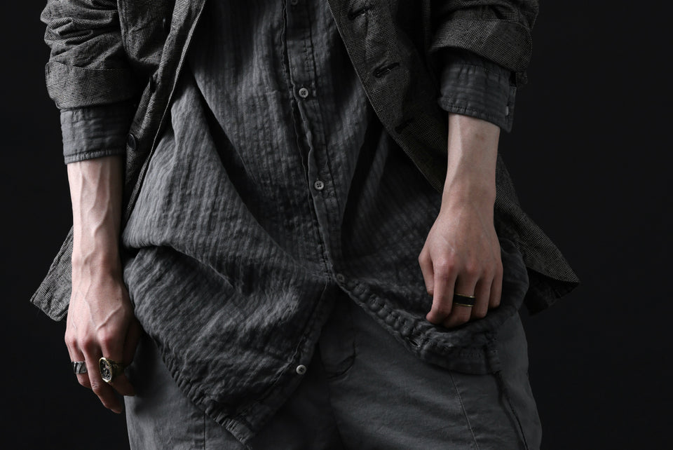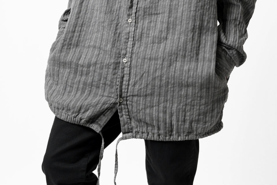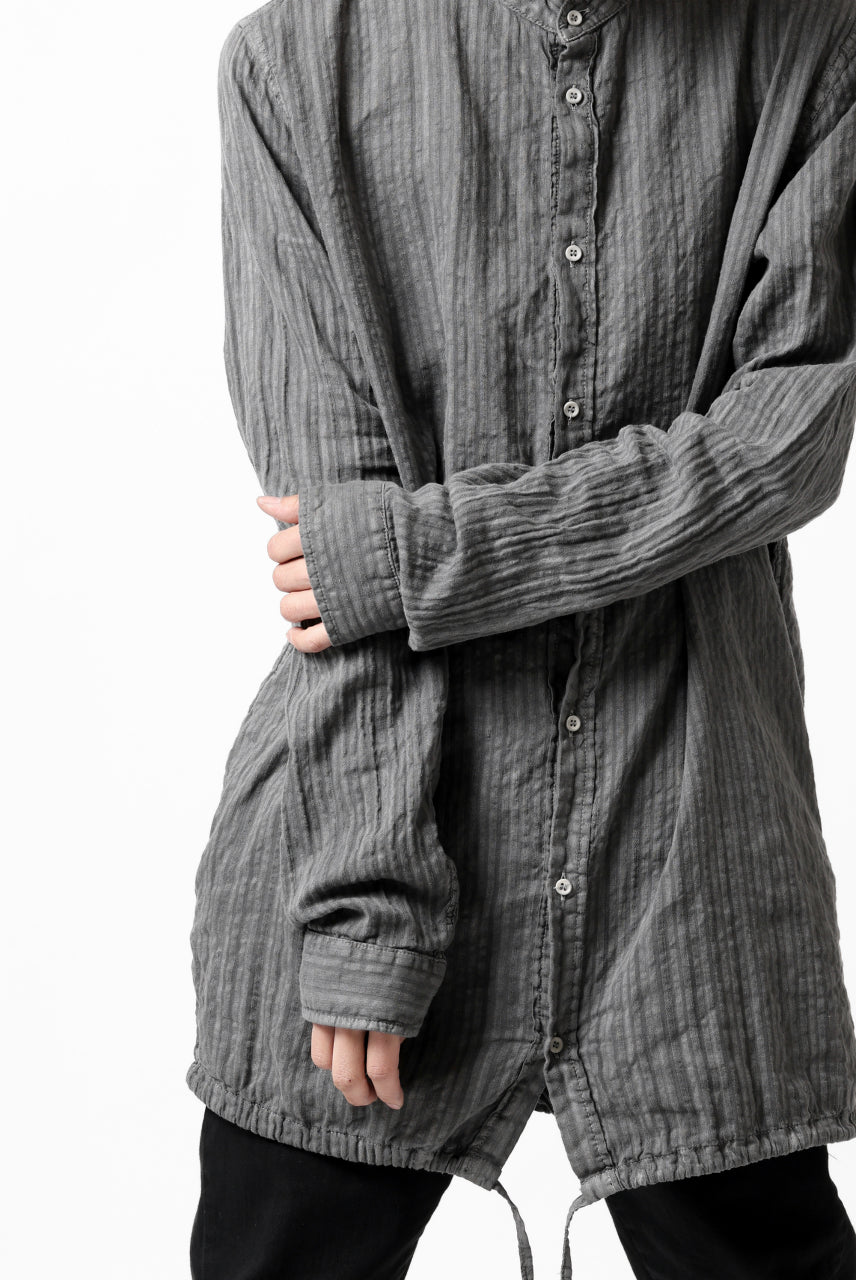 daub STRIPE LONG SHIRT / COLD DYED SOFT TWILL (GREY)