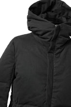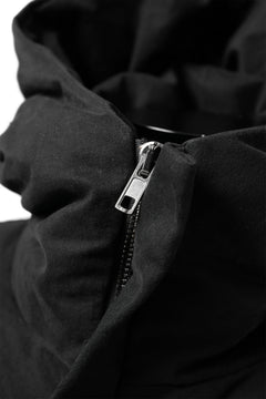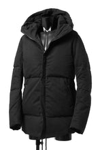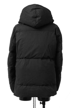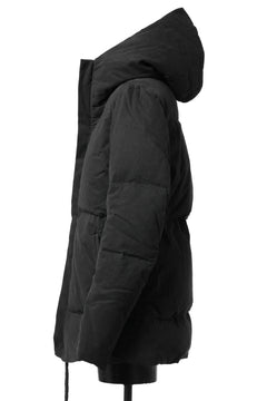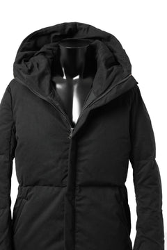 daub HOODED MEDIUM COAT / GOOSE DOWN + DYEING STRETCH TWILL COTTON (BLACK)