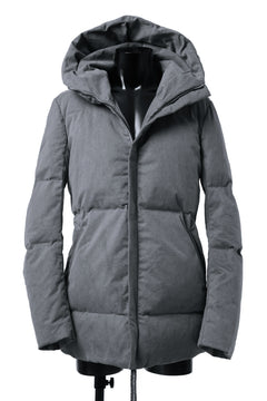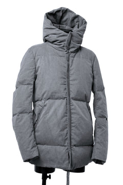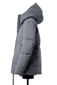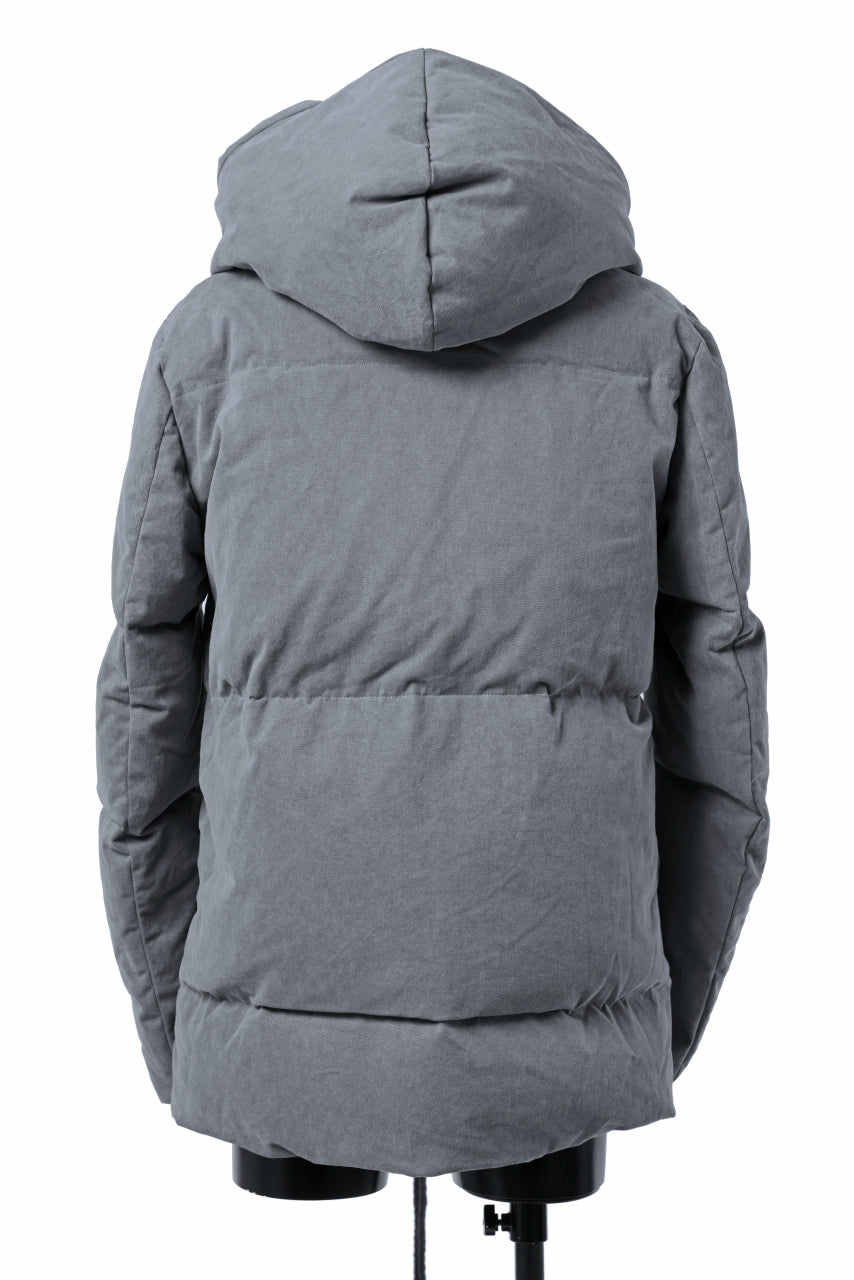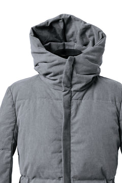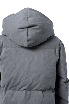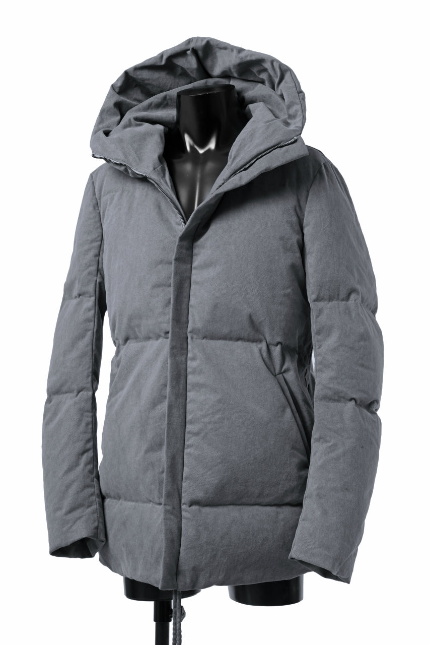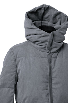 daub HOODED MEDIUM COAT / GOOSE DOWN + DYEING STRETCH TWILL COTTON (GREY)