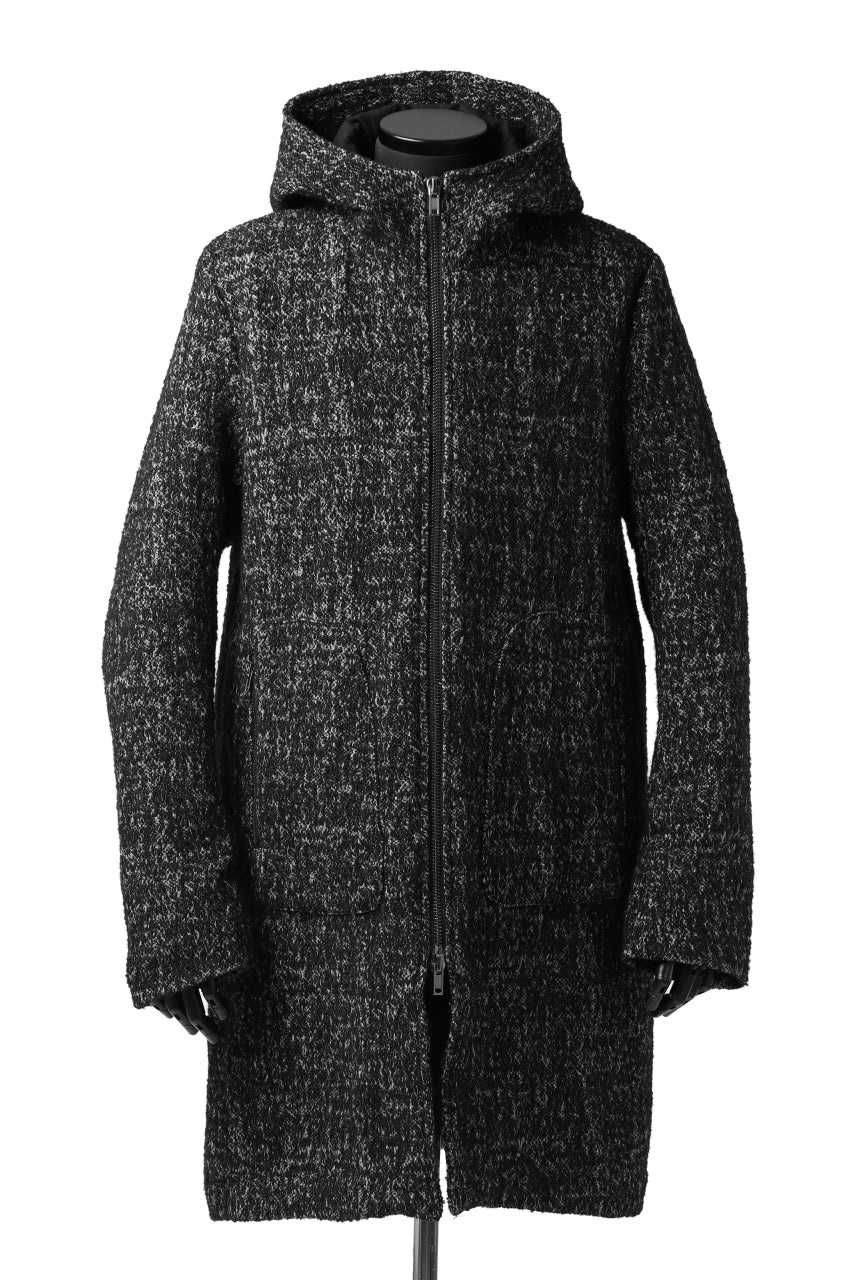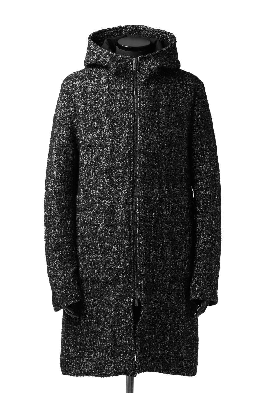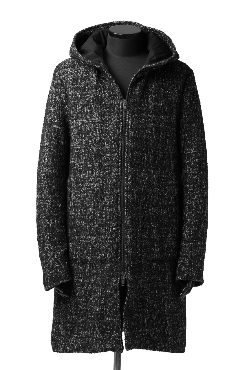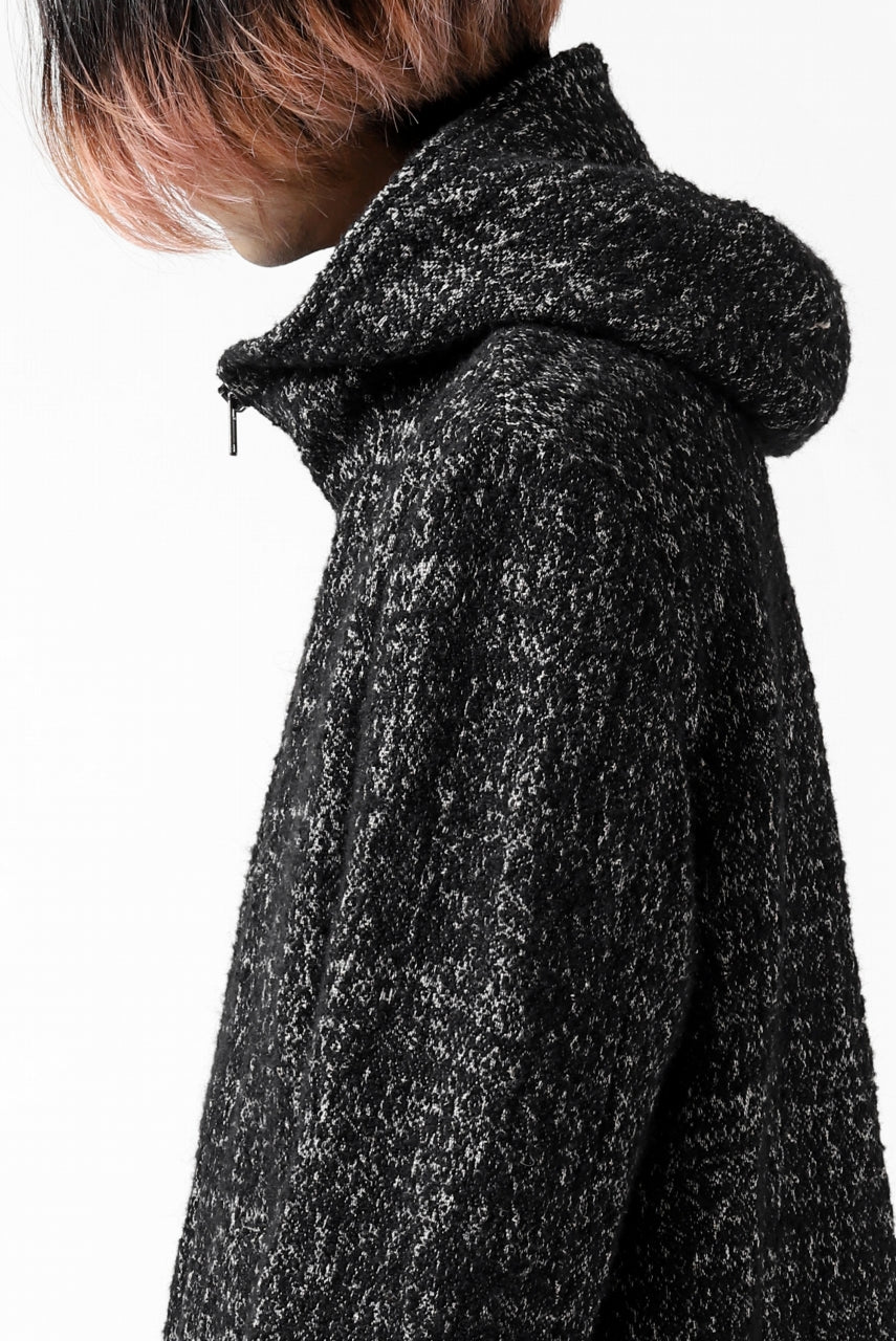 daub HOODED LONG ZIP COAT / MERANGE KNITTED (BLACK)